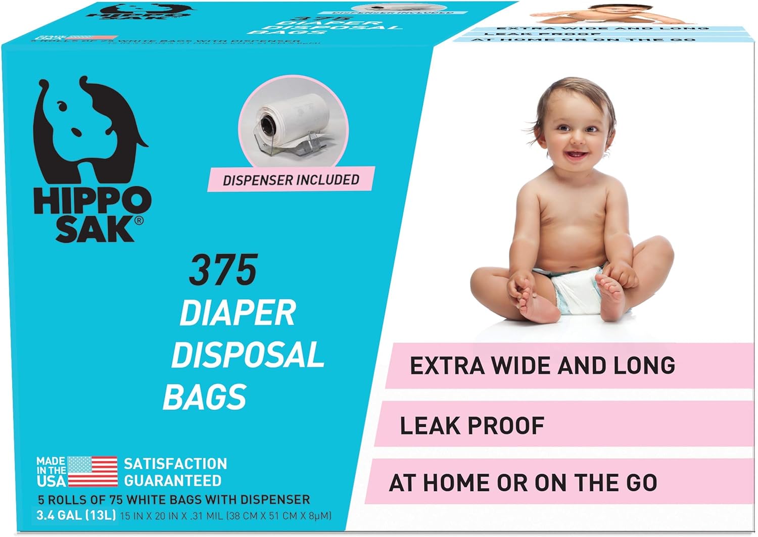 Hippo Sak Diaper Disposal System is perfect for use in the home or on the go. It includes a compact and easy to use dispenser and comes with extra long and wide bags to hold in even the messiest diapers. When tied shut, they hold in order thanks to the 8 layer “star sealed” bottom seal. They are also Made in the USA.