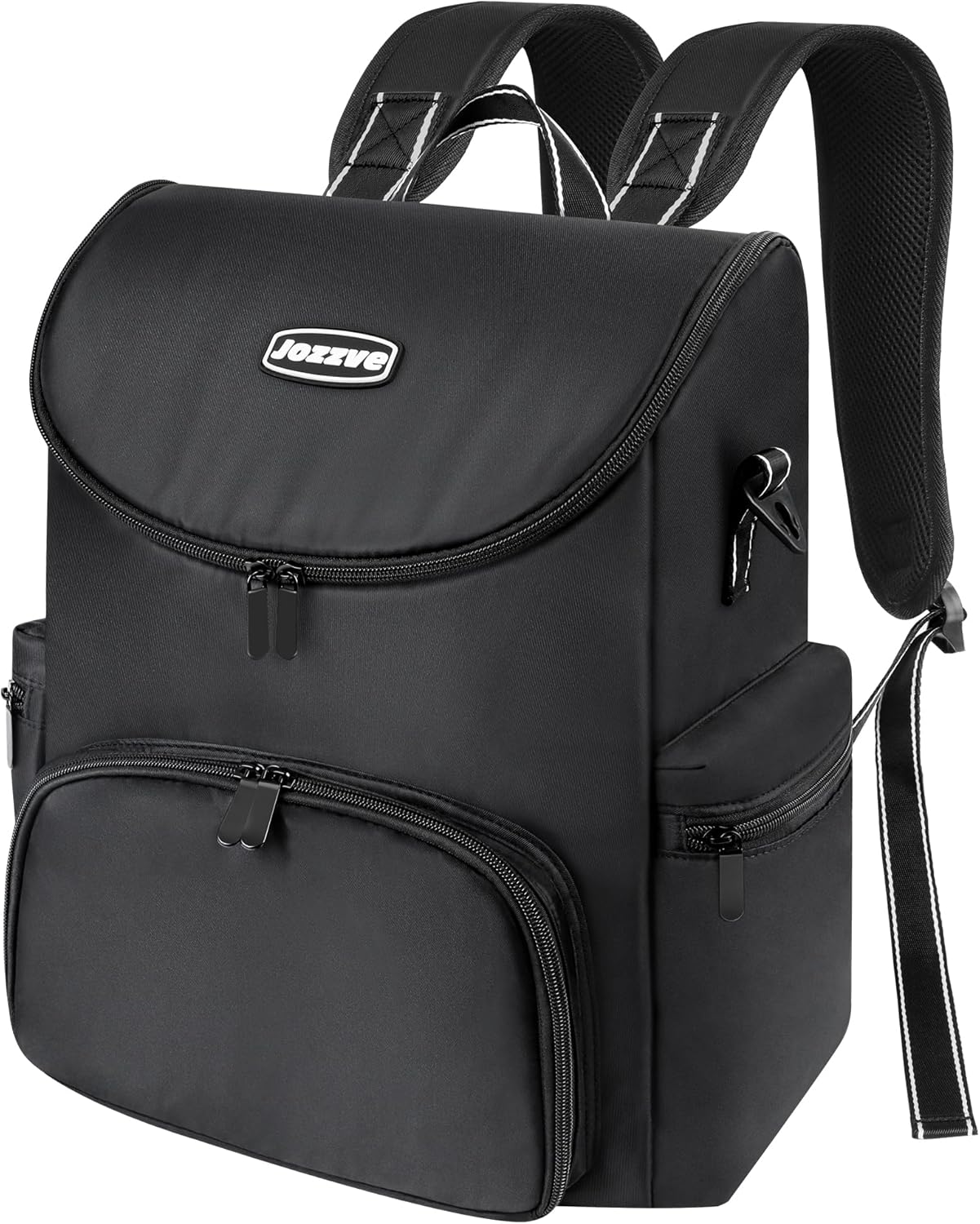 【Waterproof & Durable】: Jozzve black diaper backpack is made of durable, lightweight, waterproof Oxford fabric with a polyester interior lining. With reinforced seams and tear-resistant design at shoulder straps and handles, the high-quality zipper is smooth enough. All accessories are made of aluminum alloy metal, which is sturdy and durable.