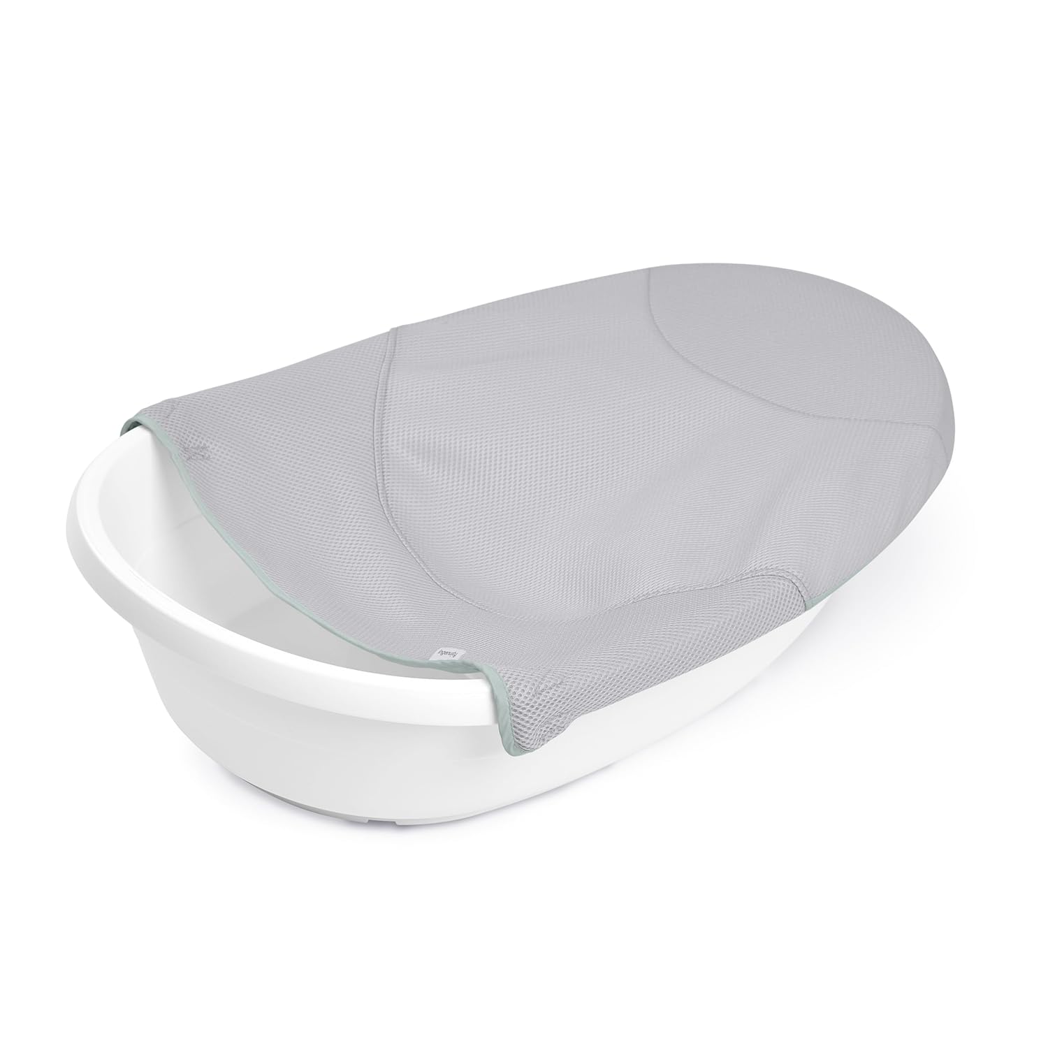 A unique wide sling design cradles baby for their first baths and supports them as they slowly begin to explore bathtime from a safe, angled recline. The sling is machine-washable and quick-drying so it’s easy to keep ready for use.