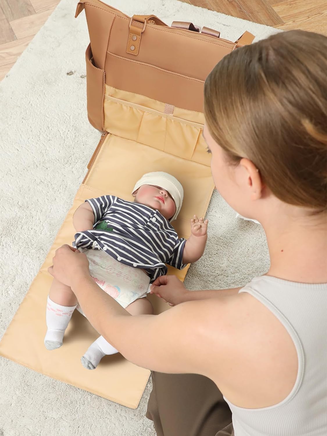 Premium Material, Easy to Clean – Crafted from 3-layer water-resistant neoprene composite, this diaper bag tote is soft, durable, and lightweight. The wipeable, highly stain-resistant exterior repels spills effortlessly, while the waterproof foldout changing pad makes cleanups a breeze. Hand wash, hang it dry