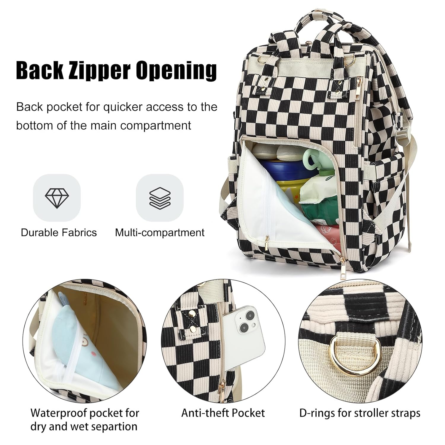 【Material】Crafted from soft, lightweight corduroy fabric with a cute pig nose pattern, this diaper backpack combines reinforced double-stitched seams with tear-resistant construction to ensure lasting durability.