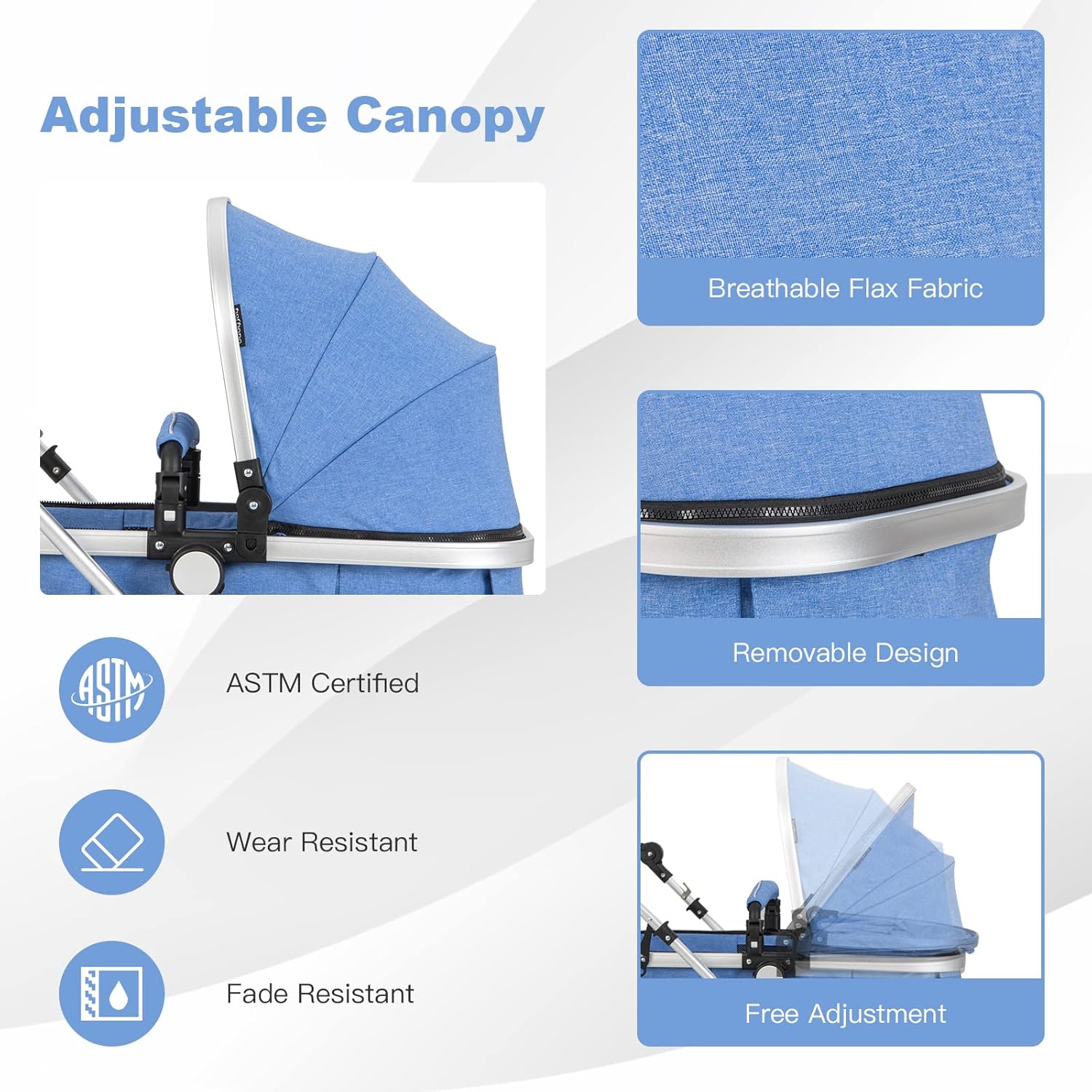 2-IN-1 BABY STROLLER— The infant basket can be detached when it is inconvenient to go with a baby stroller. Its adjustable seat can be reclined to accommodate your sleeping infants or attentive toddlers. With a push or pull, you can adjust the seat higher or lower as you like to make your baby well rested.