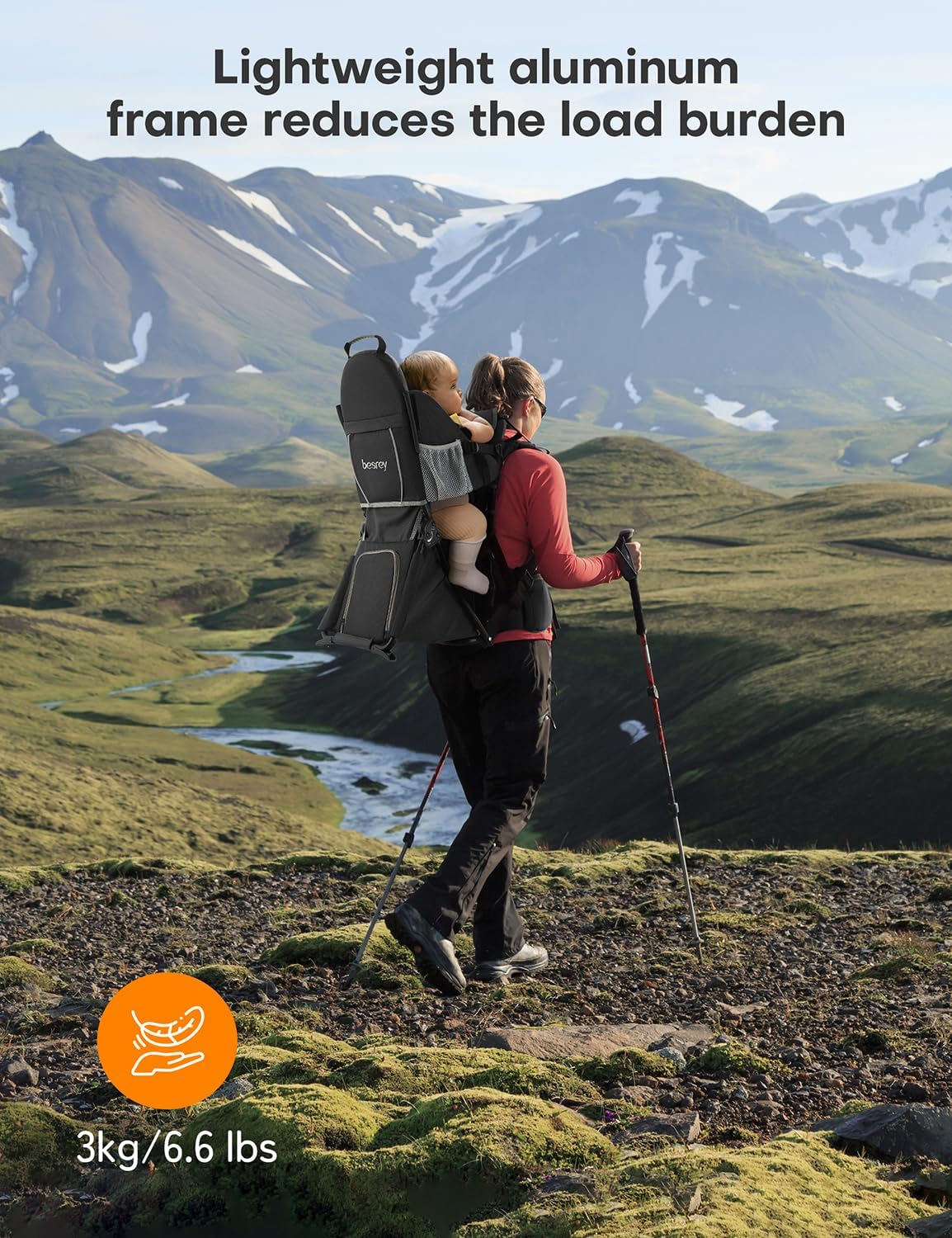 【Better Stress Decompression】: besrey baby backpack carrier features proper weight distribution designed to keep you free from back pain after long walks with your baby. The flexible and height-adjustable shoulder straps can comfortably fit both parents.