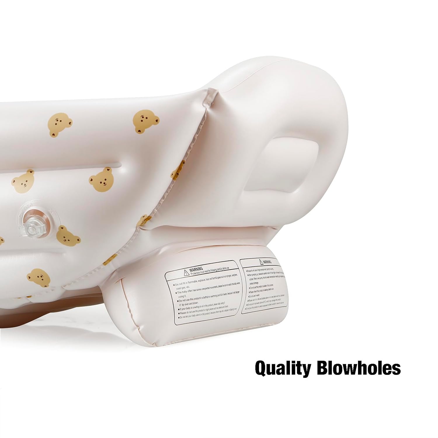 All-in-One Practical Set:This set includes an inflatable bathtub and a baby seat, both suitable for babies aged 3+ months. Featuring adorable cartoon designs, it captures your baby’s attention while supporting various needs like bathing, playing, or sitting up.