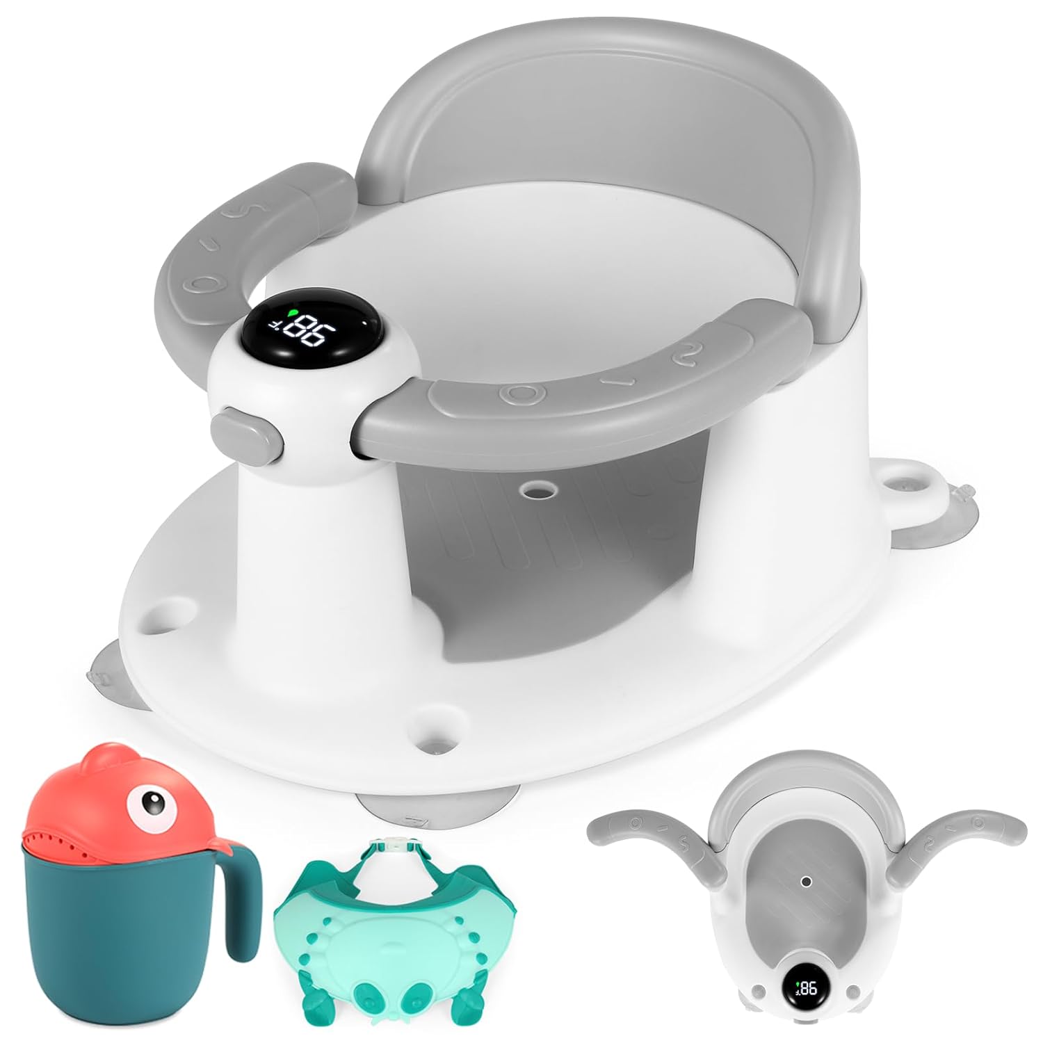 Baby Bath Seat for Babies 6 Months & Up, Bath Seats for Babies Sitting Up, Infant & Toddler Bath Seat with Thermometer for Baby Bathtub Shower, Non-Slip, Safe & Comfortable Baby Bath Support, Grey