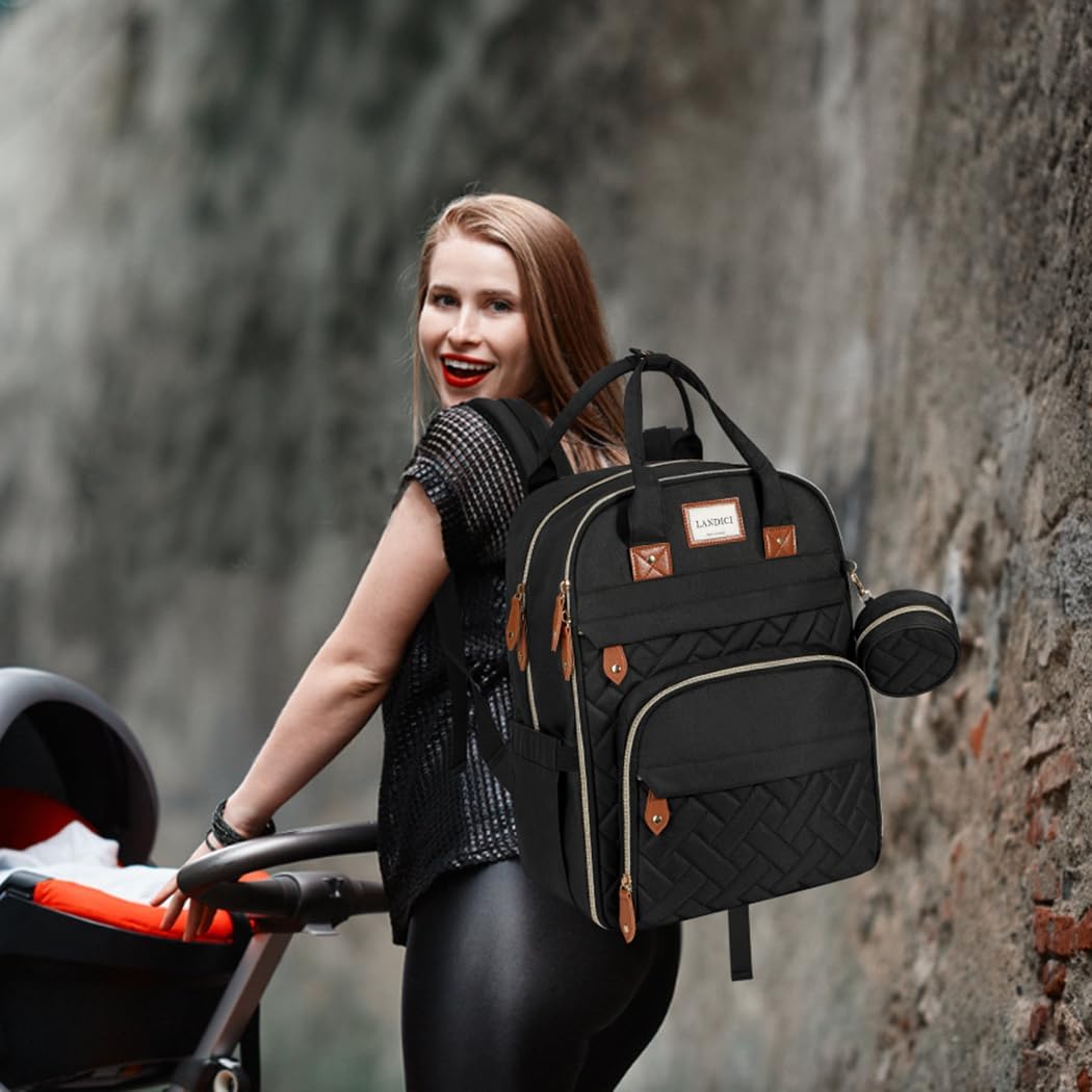 DURABLE AND COMFORTABLE: Our diaper backpack is made of waterproof polyester fabric, sturdy zippers and lining. Reinforced padded shoulder straps and a padded back panel distribute the load evenly across your shoulders and back for long periods of wear without stress