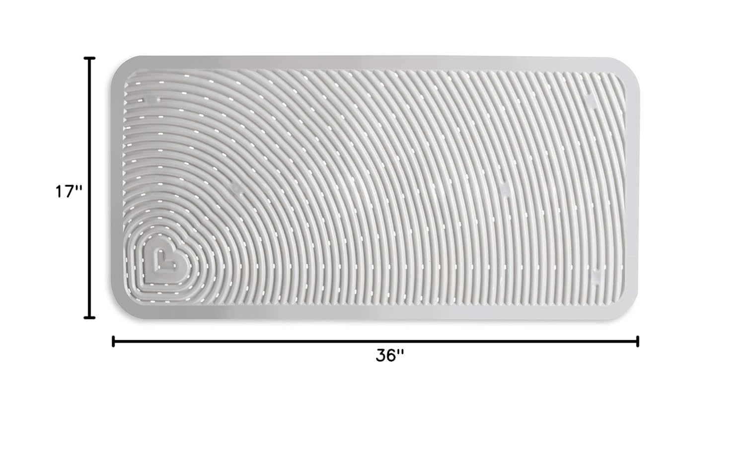 Product Dimensions: Bath mat measures 36″ L x 17″ W, spout guard measures 7.5″ x 4″ (top opening measures 4″ x 1″)
