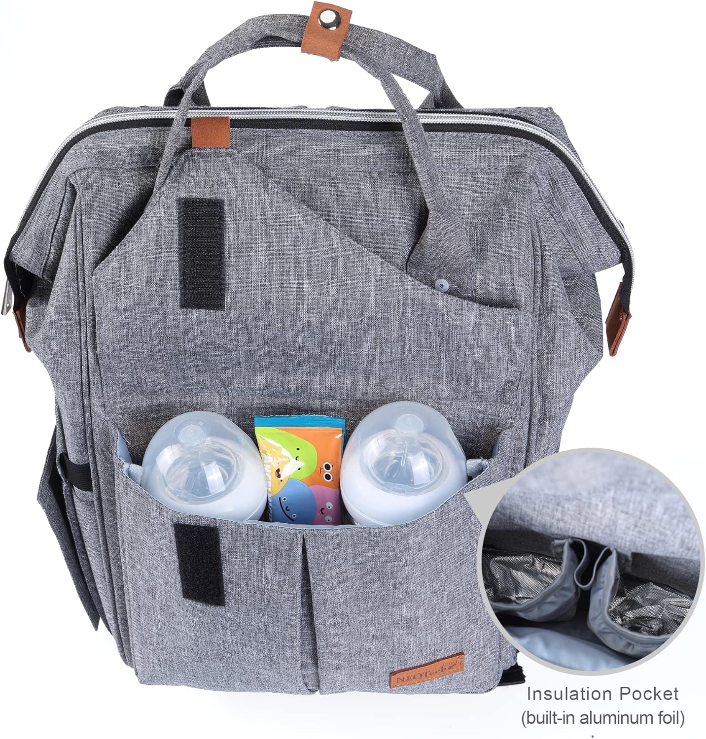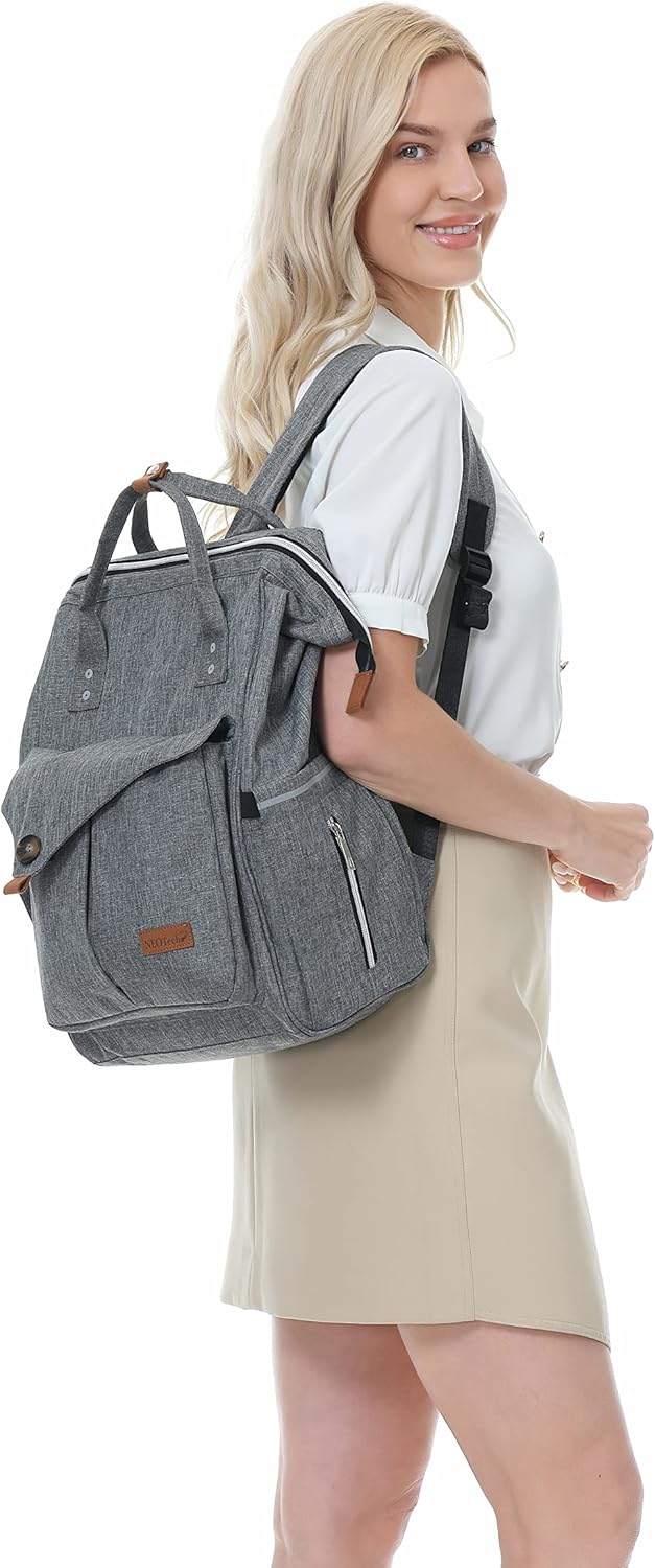 NeoTech Care Diaper Bag Backpack for Baby Girl/Boy, Wide Opening, Multifunction Organizing Pockets (Gray)