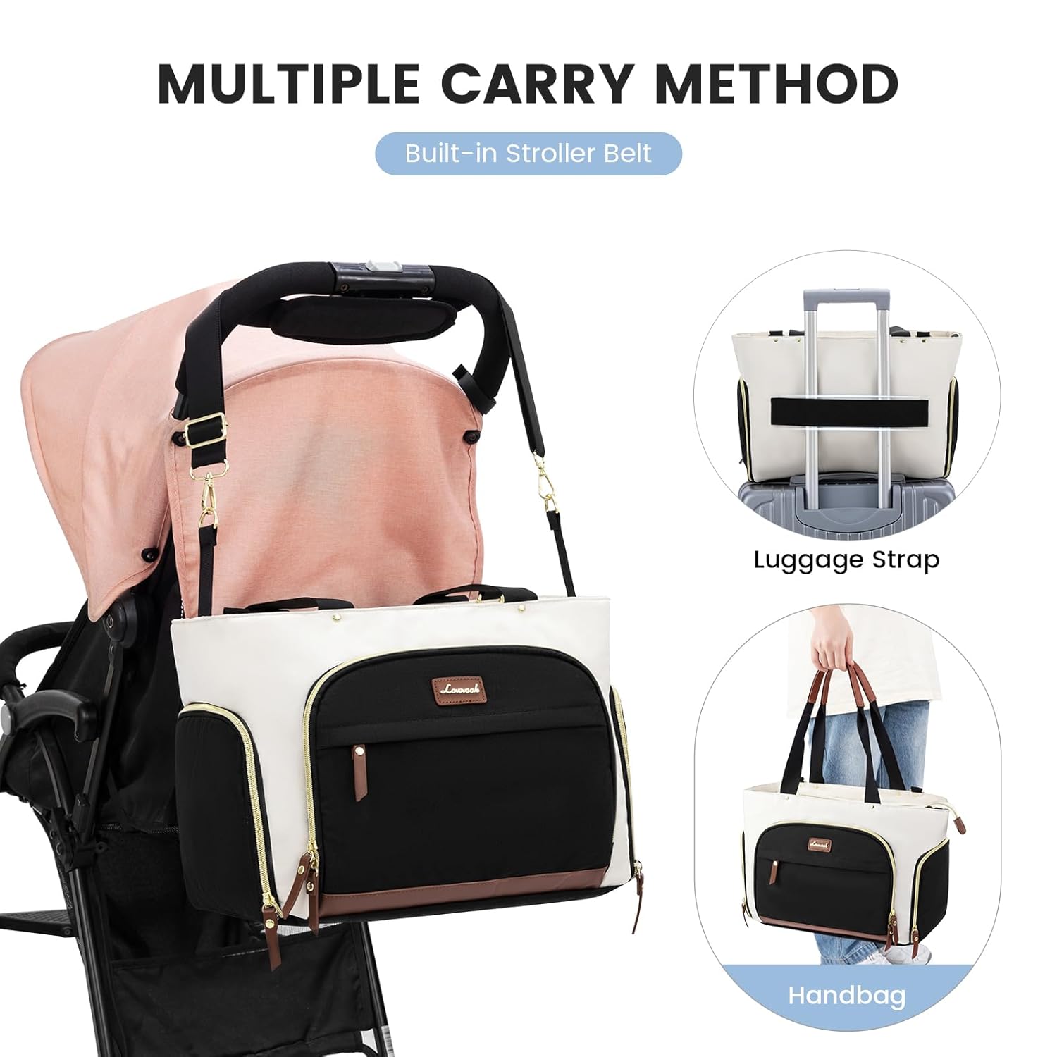 【Multiple Carrying Options】: Seamlessly transitioning from a shoulder bag to a crossbody bag, this diaper bag ensures convenience and style. Easily attach it to a stroller using its hooks, secure it to luggage with straps, and carry it aboard flights, making it an ideal travel companion for parents on the go.