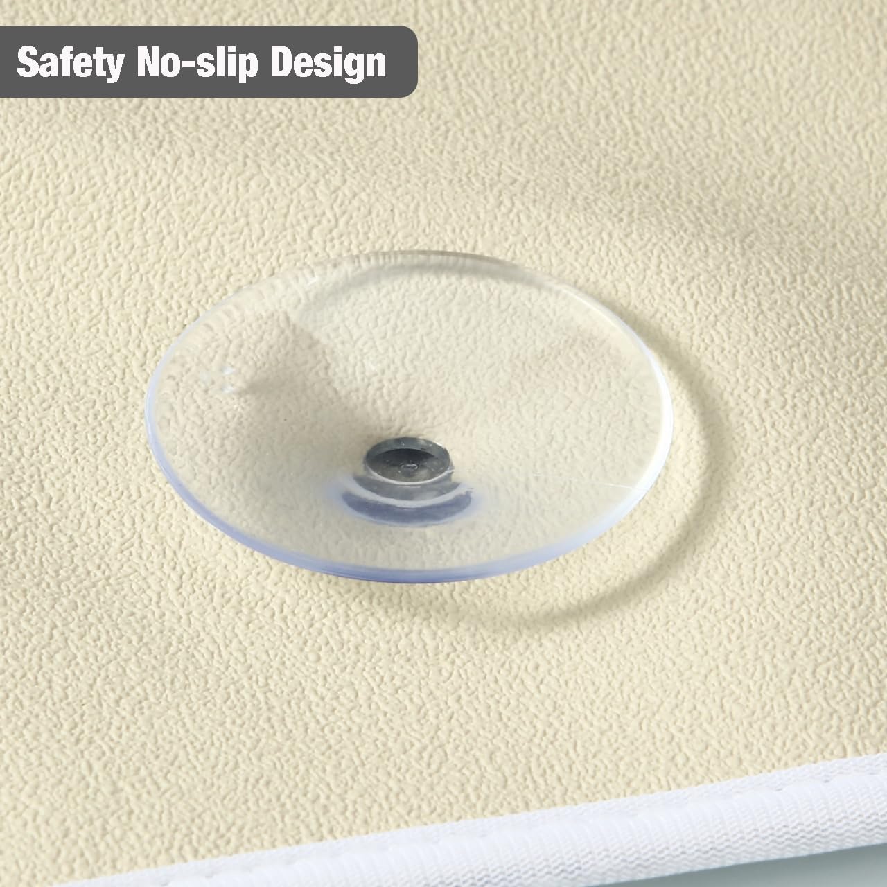 Secure and Non-Slip Design: Equipped with 4 strong suction cups and a skid-resistant textured backing, the ergonomic bath tub kneeler and elbow rest stays securely in place, providing a non-slip surface for a safe and comfortable baby bath.