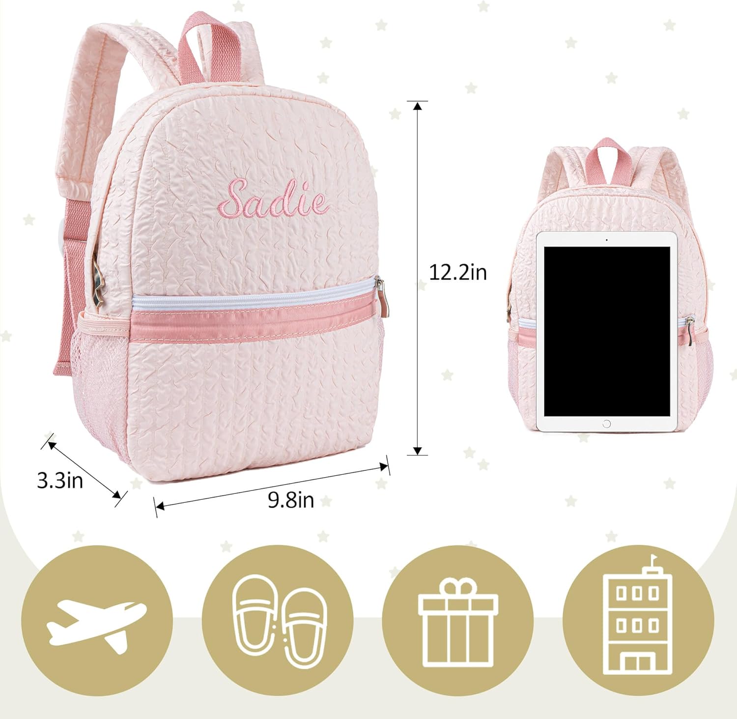 🎒✨ Give your little one a backpack that’s as SPECIAL and UNIQUE as they are! This adorable PERSONALIZED SEERSUCKER BACKPACK is made from soft, durable cotton and features a cute gingham pattern. 🌟 Perfect for daycare, outings, or as a thoughtful gift for birthdays or Christmas, this small backpack offers COMFORT and STYLE, with room for all their essentials. Customize it with their NAME for an extra touch of love! 💖 🧸Backpack Size: 9.8*3.3*12.2 inches 🌈Fabric: Cotton,Seersucker