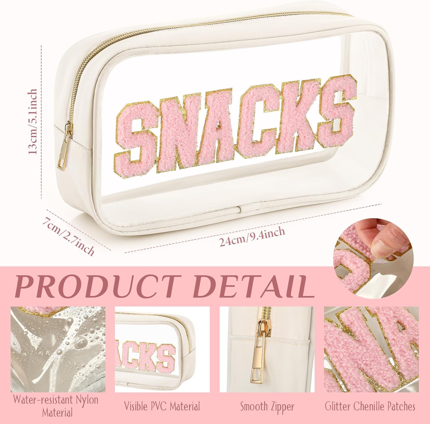 Exciting Package Deal: with your purchase, you get 4 x chenille letter clear makeup bags; Each bag is embellished with the letters ‘MAMA’, ‘STUFF’, ‘BABY’, ‘SNACKS’; The transparent appearance of the bag allows for easy identification and access to your items, saving you valuable time
