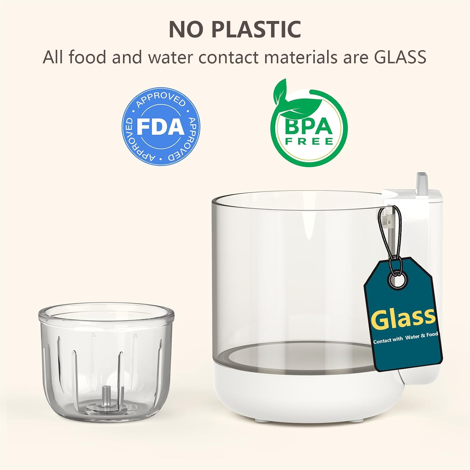 No Plastic: Baby food steamer comes tueg a durable glass bowel and a glass body, it is much safer than Tritan and plastic, you can trust that every meal you prepare is safe and healthy for your baby.