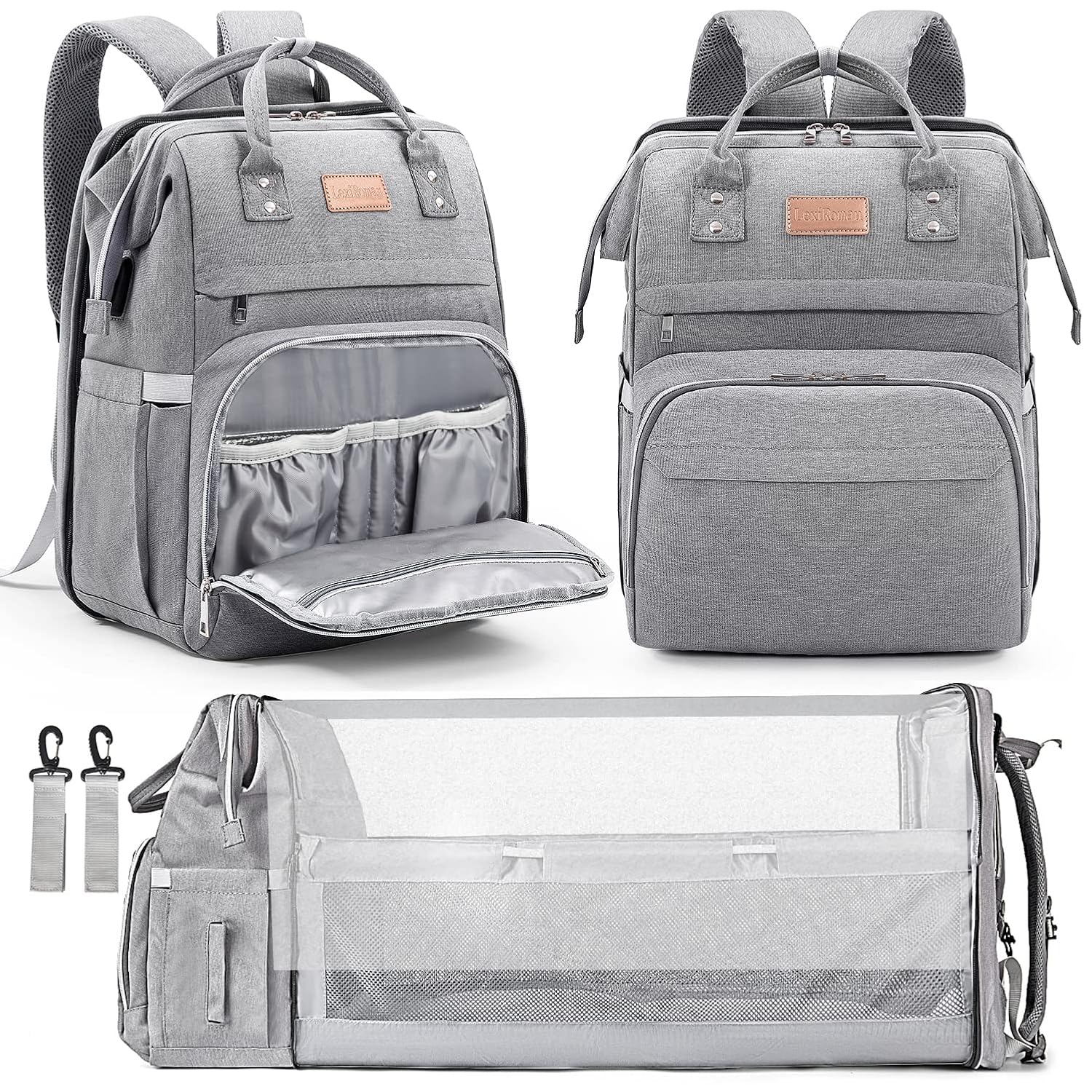 MultiFunction Pocket with changing pad The backpack has 18 pockets, with scientific partition. It can be loaded all essential stuffs like diapers,creams,wipes ect. insulated 2-bottle pockets, can keep the bottle warm or cool. backpack Its large capacity can hold a laptop or breast pump. Soft Changing Pad:makes a baby comfortable while changing.Baby diaper bag comes with everything you need when on-the-go, to hold everything for baby plus, diaper bag is a perfect travel assistant.