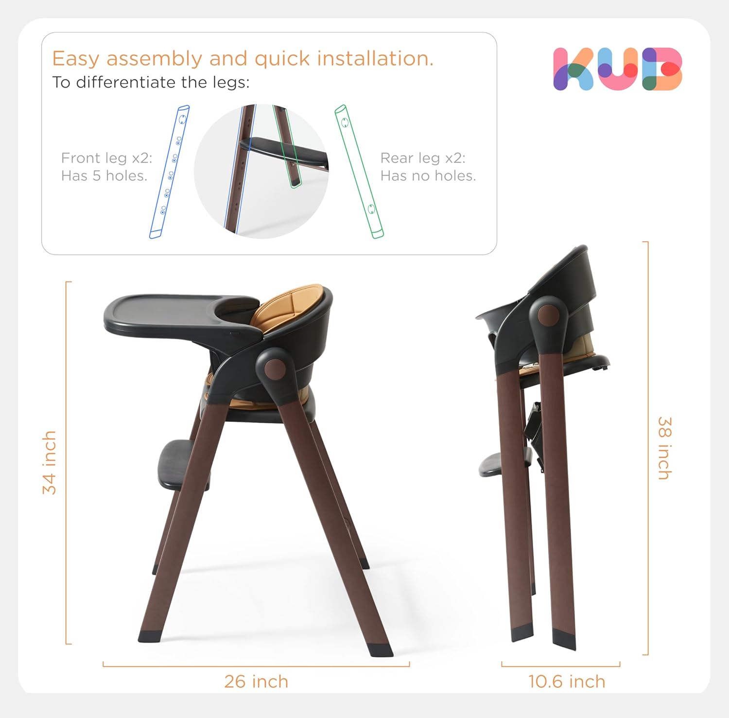 【Easy to clean & foldable】: It has a polyurethane high chair cover for quick and easy cleaning. The cushion is waterproof so unexpected spills aren’t absorbed. It can be folded away in a matter of seconds to save space when they are not in use.