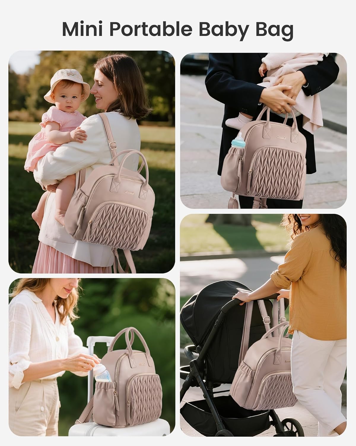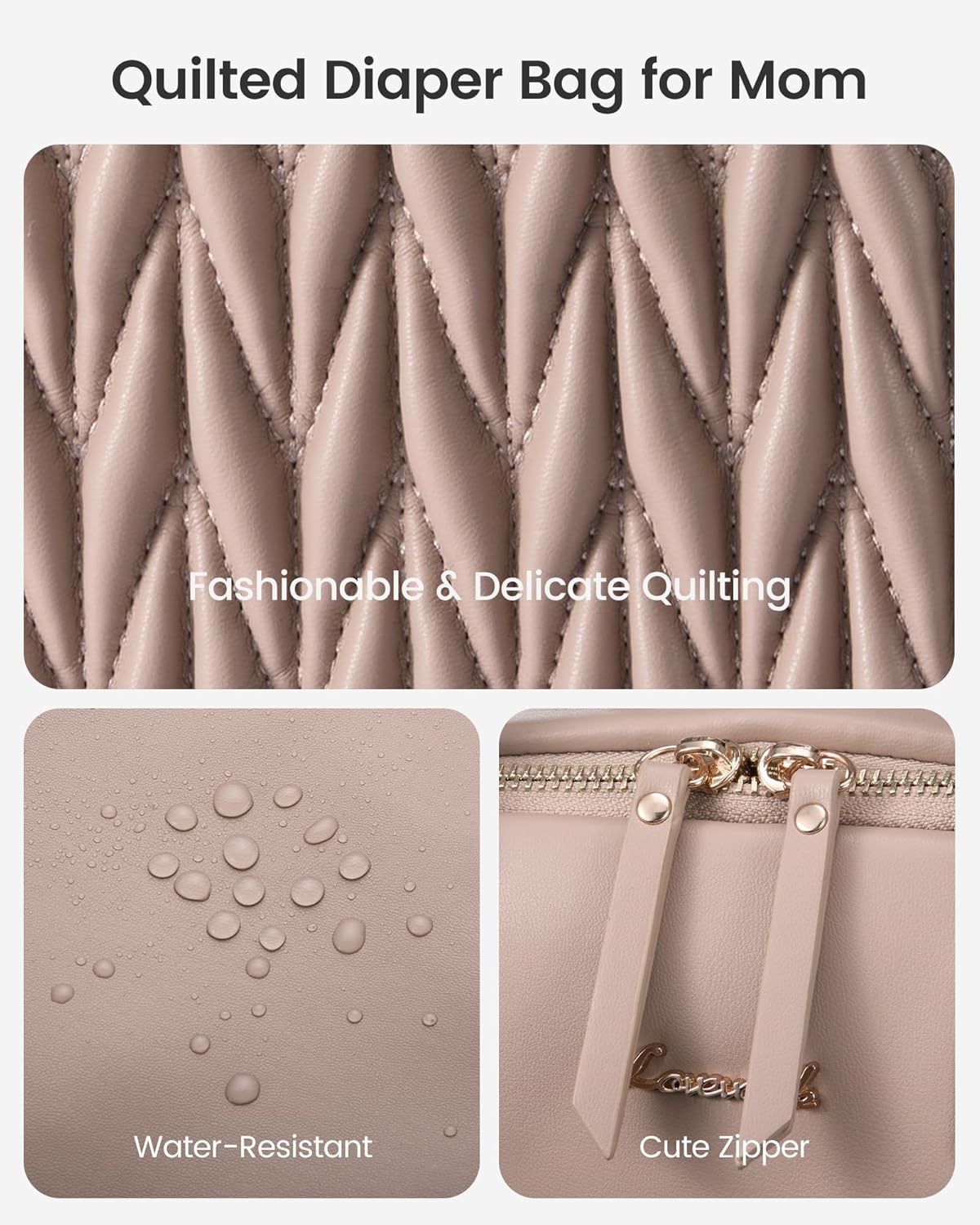 【Fashion Leather】Our baby diaper bag is made of lightweight and soft waterproof leather fabric, with exquisite quilted design and a metal zipper that is silky smooth. Mini diaper bag with adjustable shoulder straps, easy to adjust length, suitable for young mothers to match various dressing styles