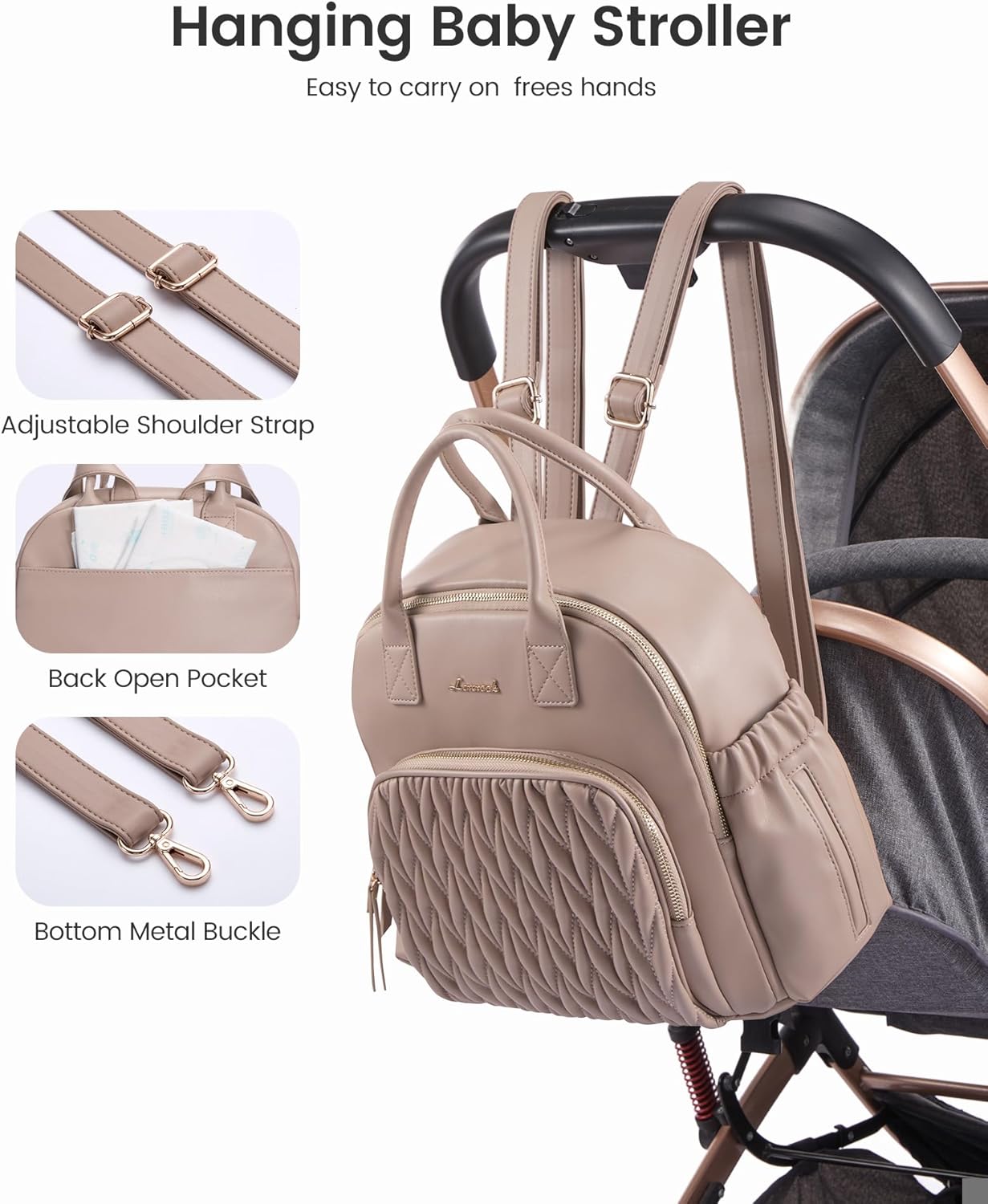 【Fashion Leather】Our baby diaper bag is made of lightweight and soft waterproof leather fabric, with exquisite quilted design and a metal zipper that is silky smooth. Mini diaper bag with adjustable shoulder straps, easy to adjust length, suitable for young mothers to match various dressing styles