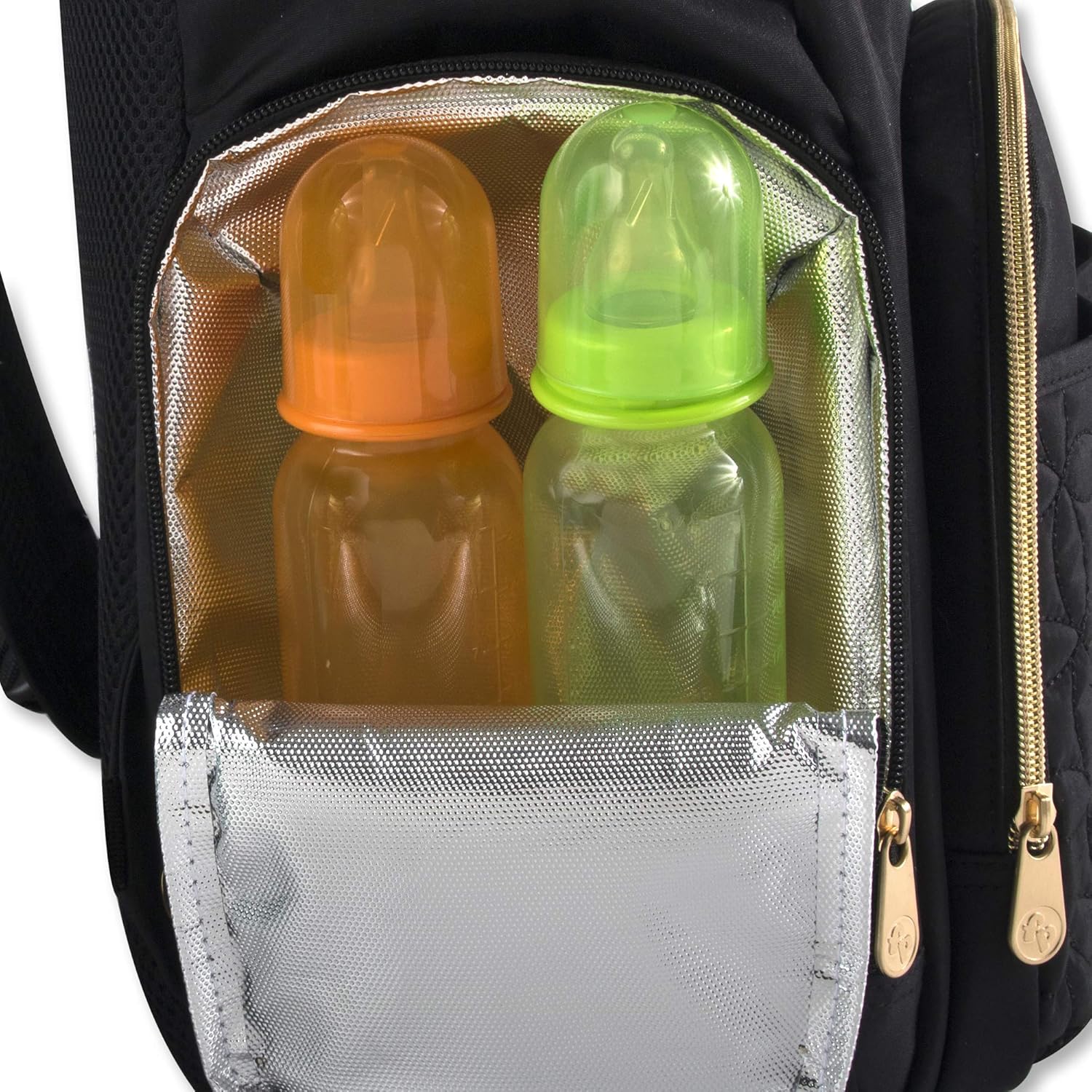 - Insulated bottle pocket that fits up to 2 large bottles
