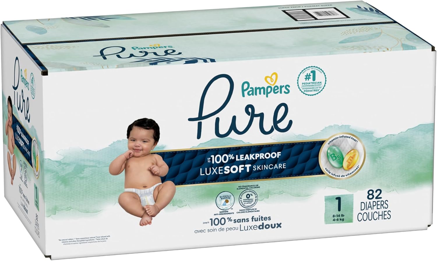 Your search is over. Everything you’ve been waiting for in a diaper, you’ll find with Pampers Pure. Our most premium protection for your newborn. MADE FOR SKIN HEALTH We’ve carefully crafted Pampers Pure diapers with plant-based ingredients and a shea butter infused liner that moisturizes to help nourish baby’s skin. Pampers Pure Protection diapers are irresistibly soft and breathable. Now with NEW & IMPROVED softness! 2x softer than Honest diapers to help keep your baby comfy. Our luxury diapers are approved by the Skin Health Alliance. Use with Pampers Pure Aqua wipes to help protect baby’s skin. LEAKAGE PROTECTION Up to 100% leakproof plant-based skin protection*. Pampers Pure Protection features an absorbent Lockaway Core that stays 2X drier** for healthy skin and a Blowout Barrier that helps prevent blowouts. PROTECTION YOU CAN TRUST The ingredients we’ve chosen to leave out are just as important. That’s why Pampers Pure Protection diapers are free of elemental chlorine, fragrance, parabens, and latex***and are hypoallergenic. All Pampers diapers are assembled in the U.S.A. Discover trusted skin protection from the #1 pediatrician recommended brand. PREMIUM DESIGN Our designer, boutique style prints make Pampers Pure just as precious as they are protecting for your baby girl or boy. *Liner enriched with plant-based, skin-soothing ingredients **vs Honest ***No natural rubber