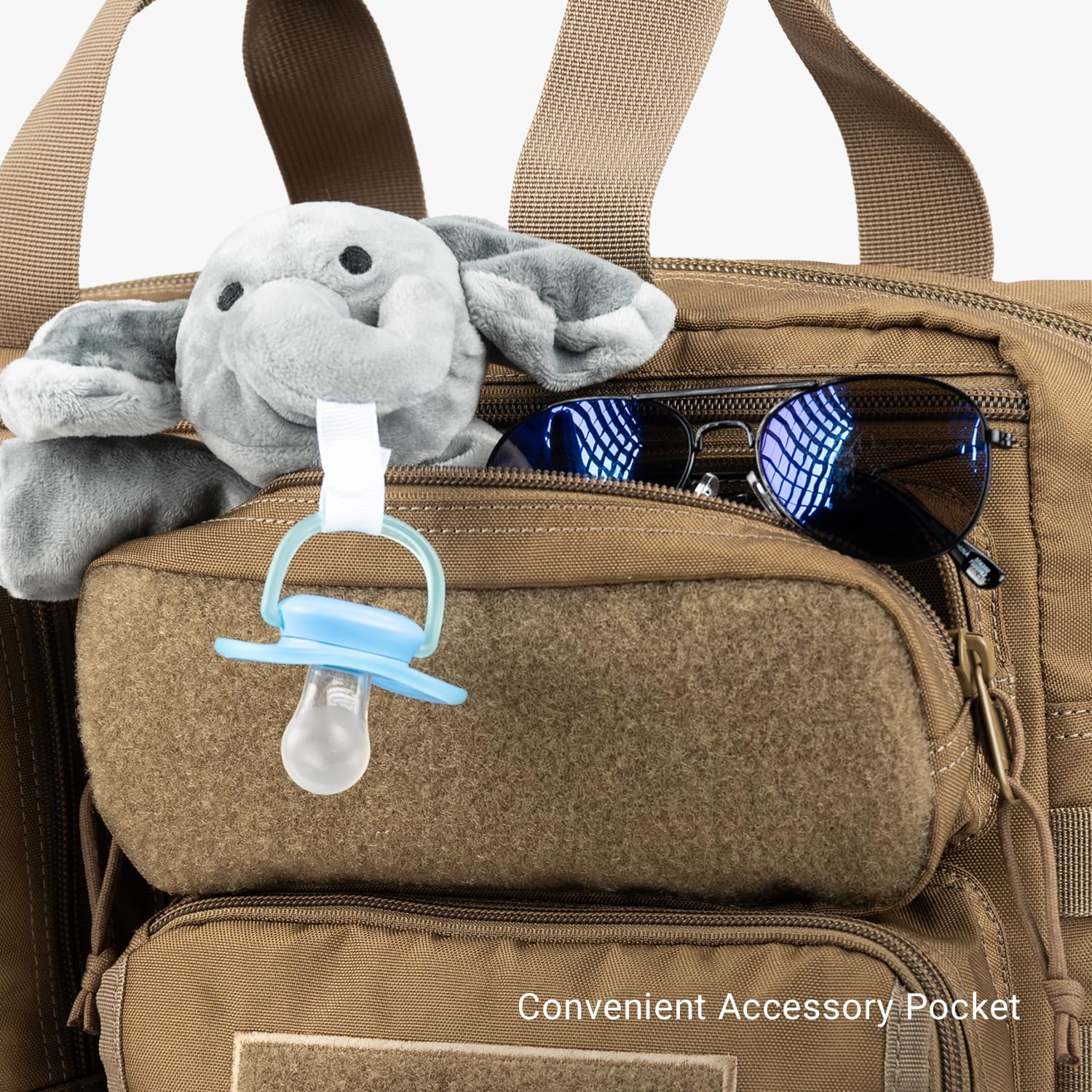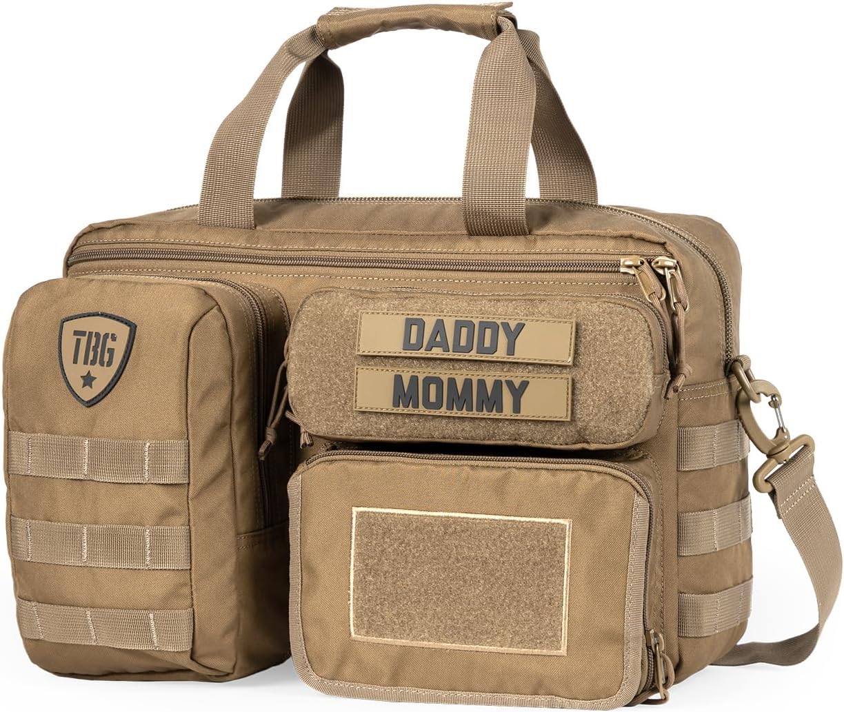 With the 4th Gen Deuce Diaper Bag at your side, you’ll have a modern diaper bag ready for whatever challenges life throws at you. Custom designed by TBG to meet the practical demands of parenting, numerous pockets and compartments make it easy to efficiently organize your diaper bag and find exactly what you need–fast. With comfortable carry options and unbeatable quality, the Deuce Tactical Diaper Bag is ready for action. The highly organized design features five external pockets, including: a thermal-lined cooler pocket, a quick-access wipes pocket with magnetic flap, a padded electronics pocket, a general use pocket, side bottle pocket and an additional rear storage section that perfectly fits the included Tactical Changing Mat. The interior offers a mixture of large and small pockets, providing room for everything you need, while the removable pocket divider and external MOLLE webbing enable you to customize your diaper bag organization, arranging things however works best for you. The included ‘Drop Zone’ Tactical Changing Mat is water-resistant and easy to clean. Comfortably padded for your baby’s comfort, it has a small interior pocket that allows room for a few diapers and a small pack of wipes to be stored with the mat at all times. In addition to fitting neatly inside the Deuce Diaper Bag, a top carry handle and D-ring offer additional carry options.