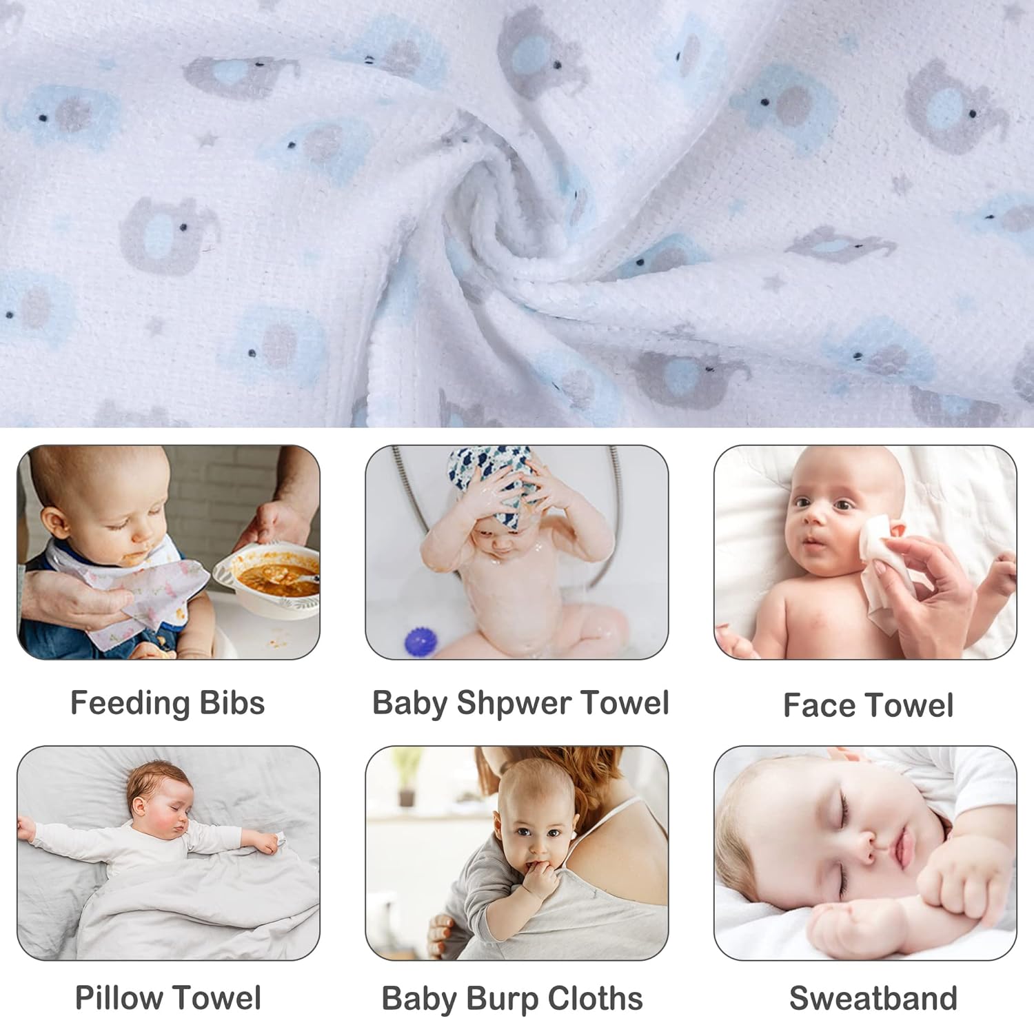 【Super Absorbent】 Super thick absorbent baby washcloths, providing a comfortable bathing experience for newborn babies. They can also be used as burp cloths for infants.