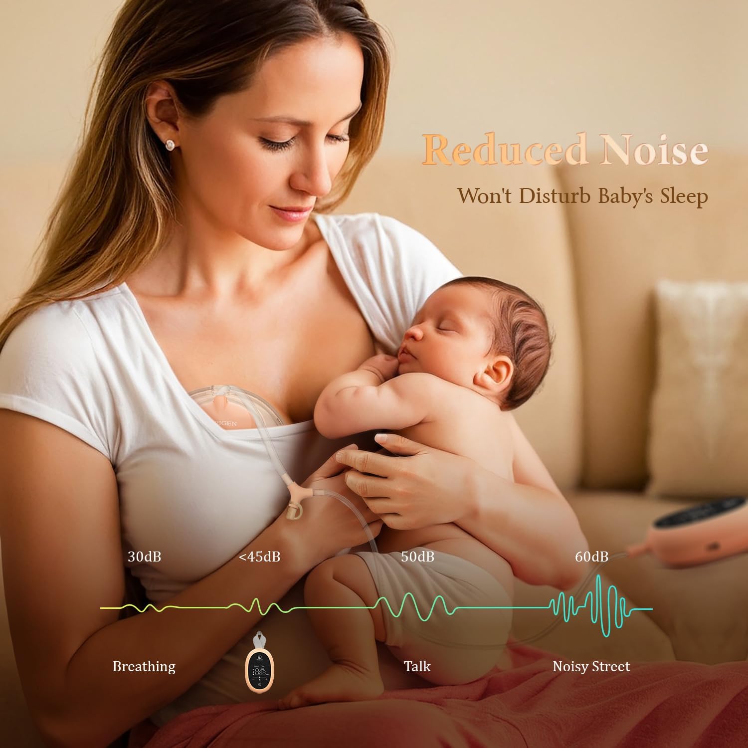 Noise Free – The noise of the portable breast pump is less than 40 decibels, ensuring your privacy whether used at night or in public. Advanced noise reduction technology ensures a peaceful pumping experience for both mother and baby.