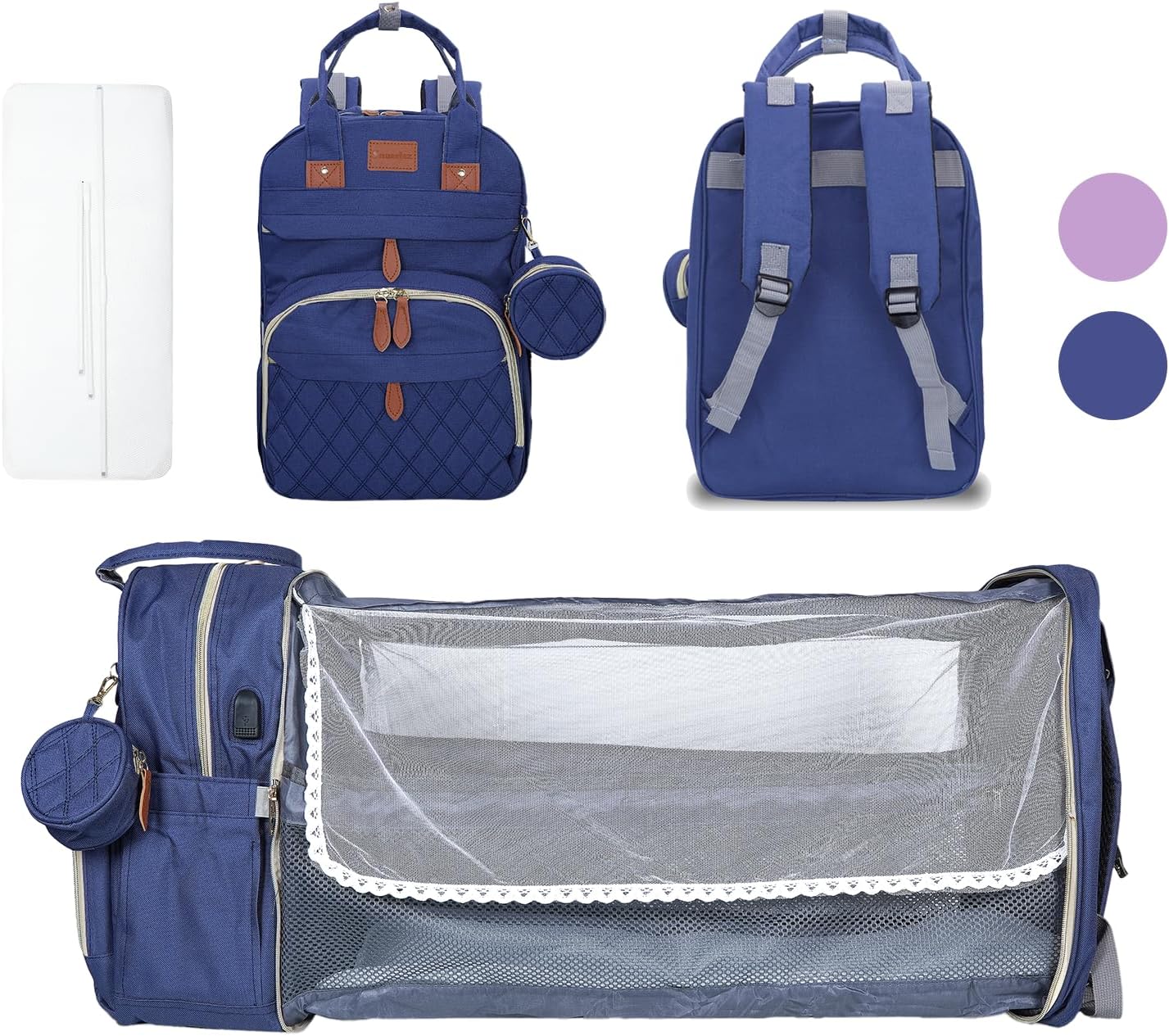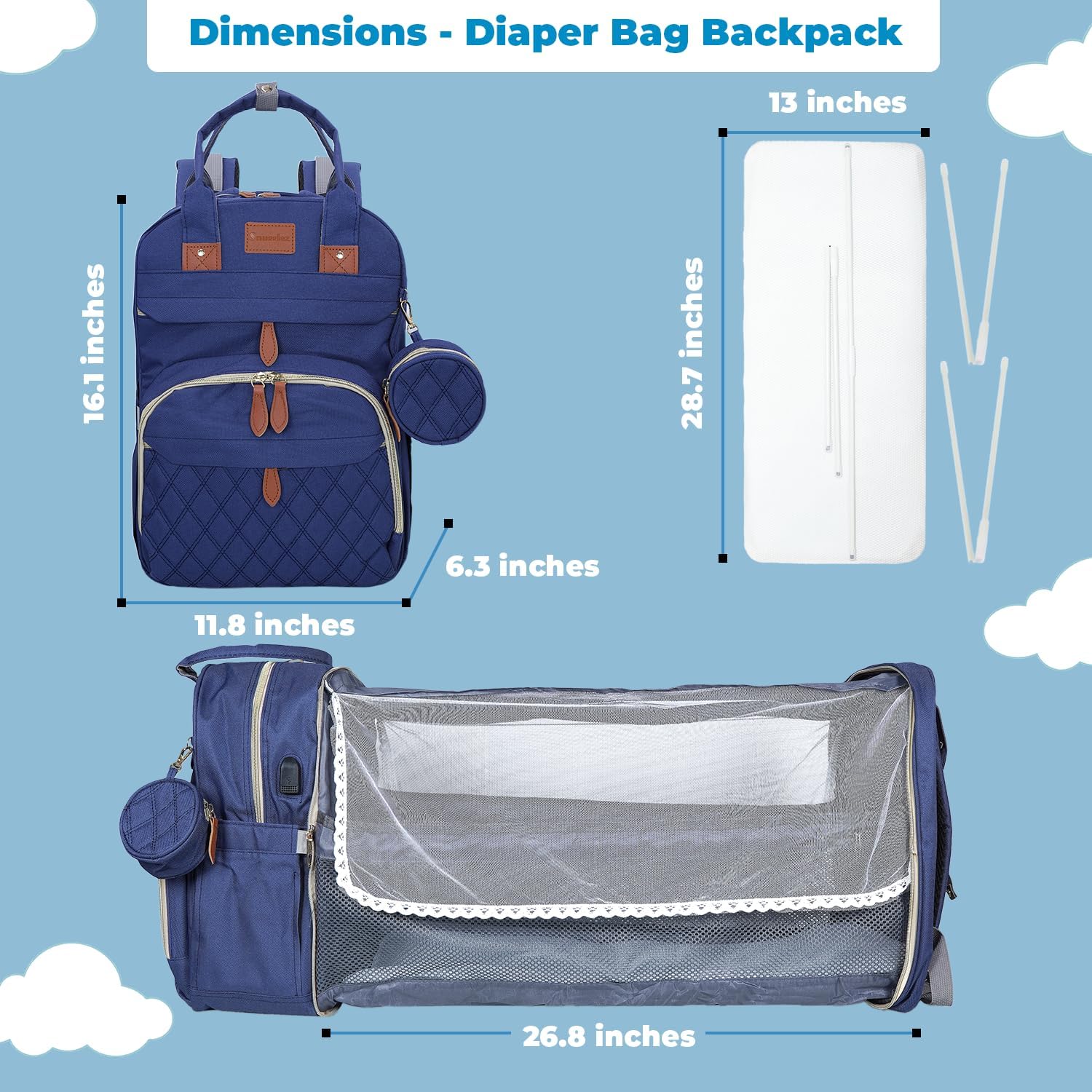 INCLUDES CHANGING STATION: Snugglez baby diaper bag is integrated with foldable changing station that offers ultimate convenience, featuring a soft, breathable mattress and a sunshade net that effectively shields your baby from the sun and deters pesky bugs to ensure comprehensive protection during on-the-go diaper changes or naps. Crafted with reinforced stitching and premium materials for lasting durability without compromising on style.