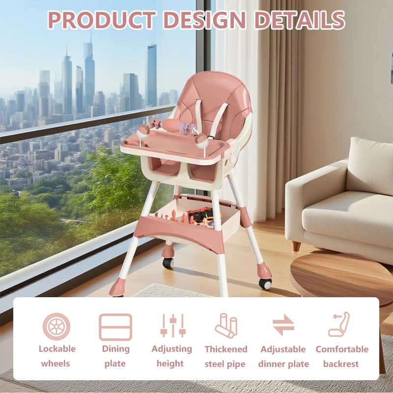 【Stable and safe】The chair has a sturdy structure and the wheels are equipped with locking mechanisms, allowing for free movement while also providing a secure hold, ensuring the safety of the baby every time it is used