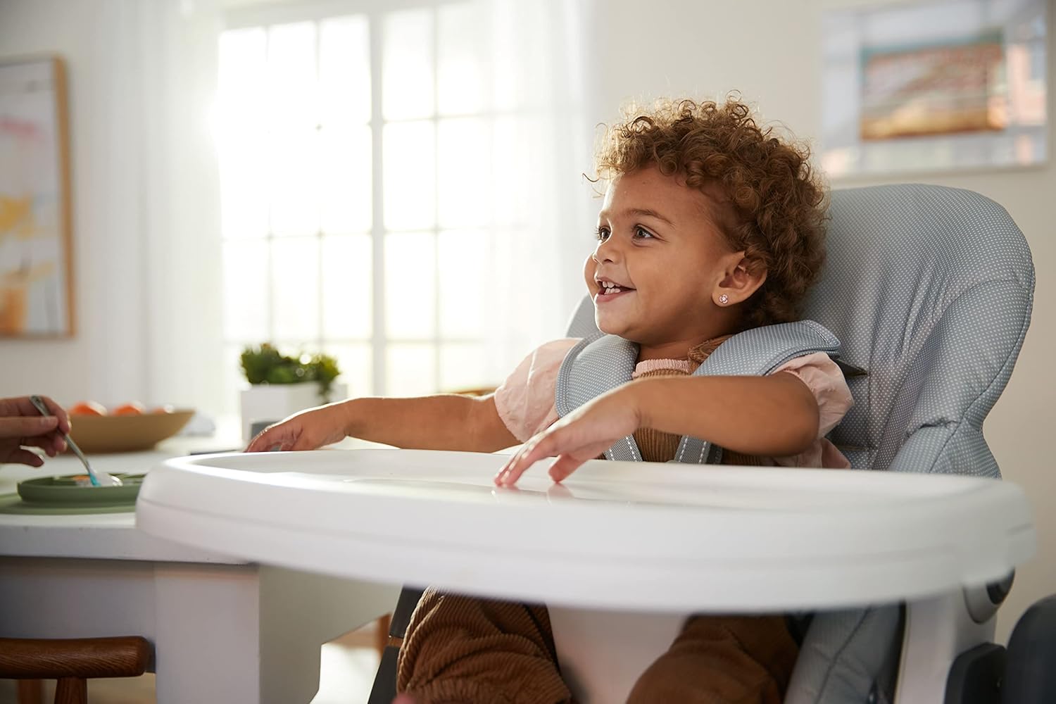 The Grow and Go Plus 3-in-1 High Chair can be used as an infant recliner, toddler high chair, and child seat. The infant recliner has 3 positions to accommodate babies. The toddler high chair has 6 height positions and an adjustable footrest. When your little one becomes a “big kid,” the tray removes so your child can join you at the table. Plus, the insert tray is dishwasher safe and the seat cover comes off for an easy wipe down.