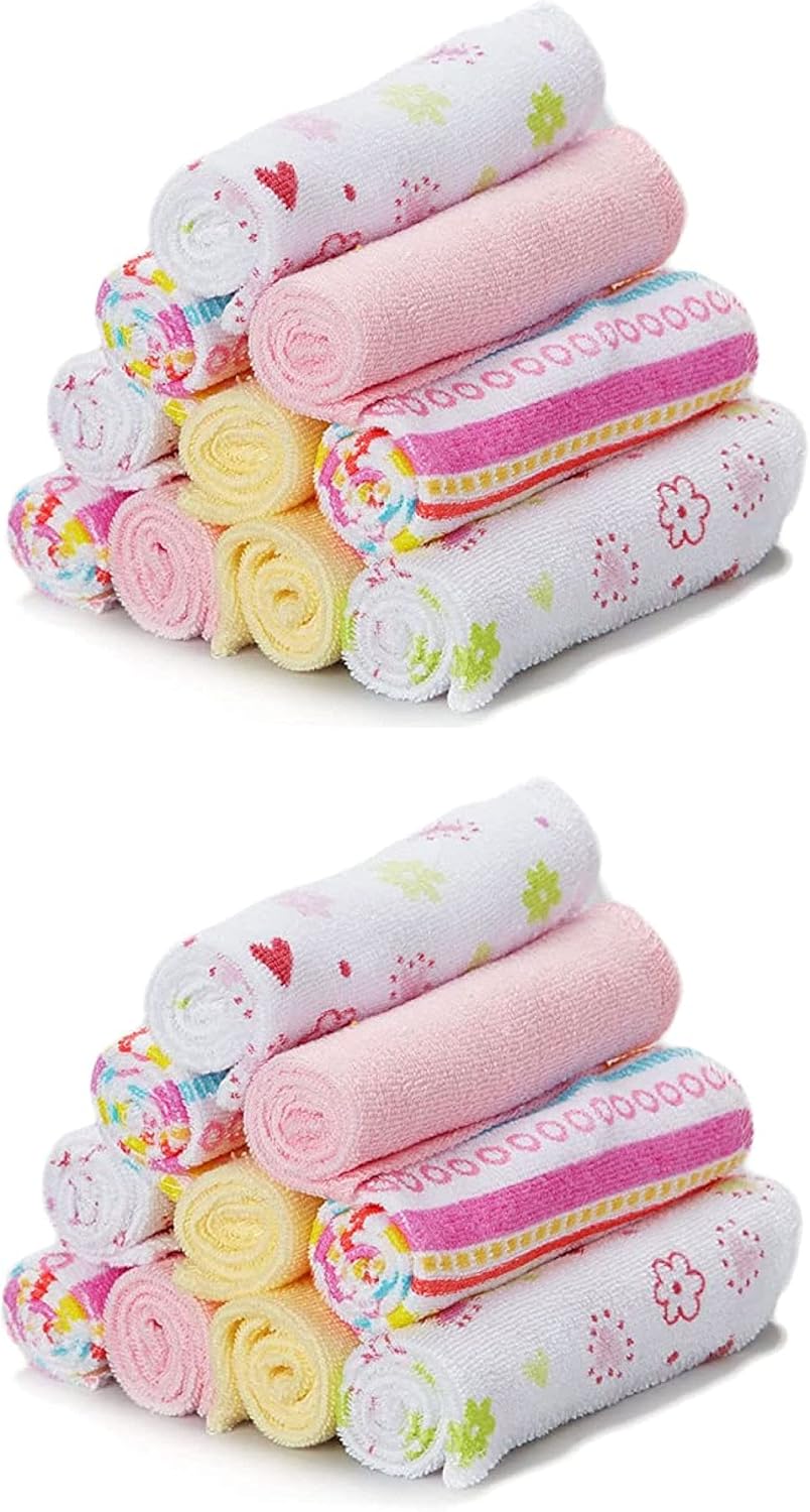 Size and other details: The pink washcloths measure 9″ X 9″, which is the perfect size for all your cleaning needs. The baby towels are made of 80% cotton and 20% poly, and a machine washable.