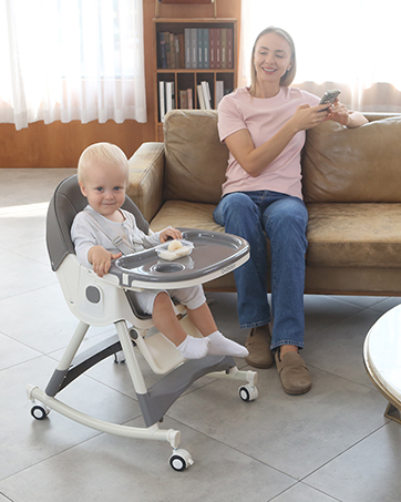 Portable & Compact: Featuring lockable wheels for easy mobility, this high chair folds flat for convenient storage. It’s ideal for city living, apartments, and small spaces, helping you keep your home organized and clutter-free
