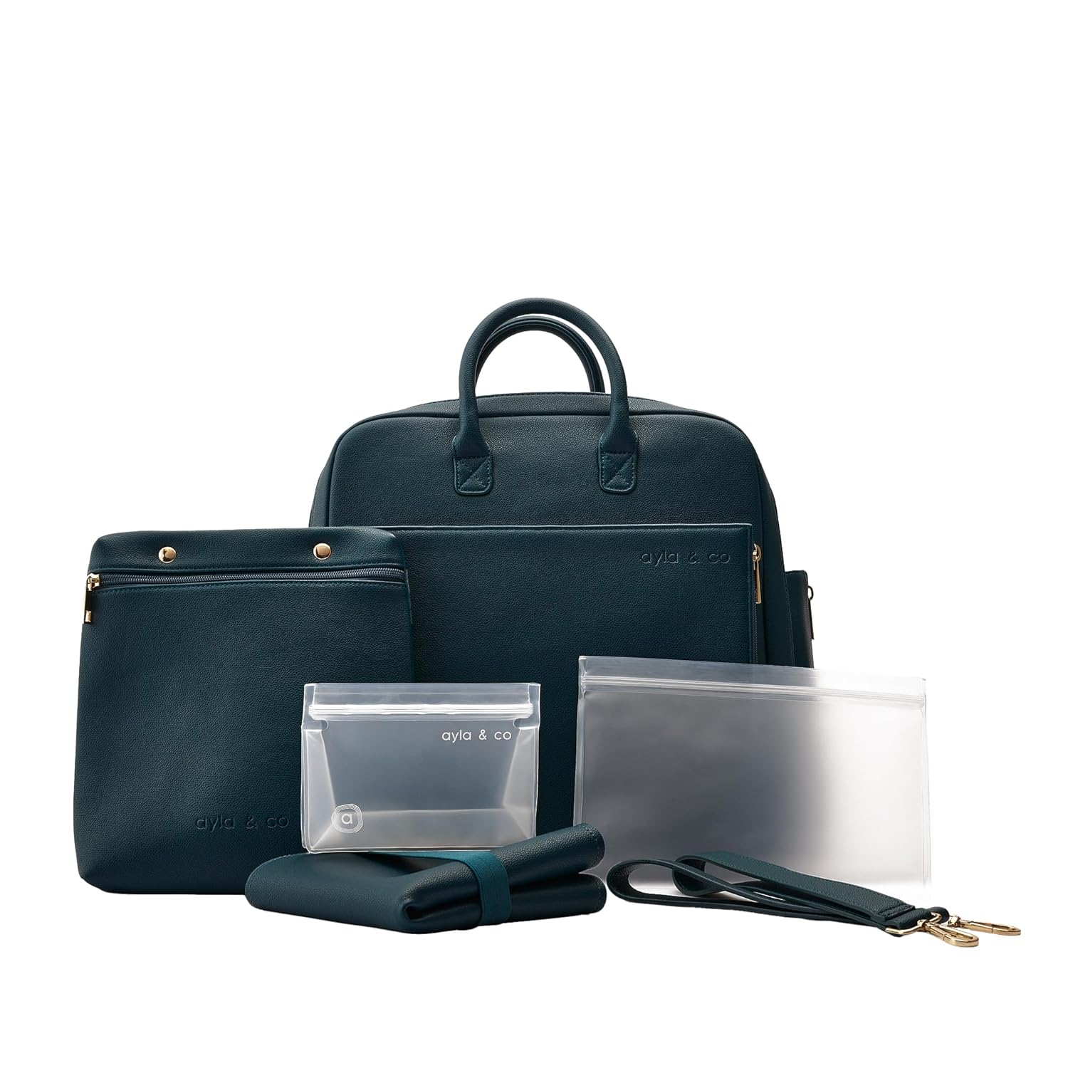Ayla & Co Full-Size Diaper Bag Backpack, Baby Essentials Cross-Body Changing Bag for Baby Girl/Boy Convertible Straps Portable Tote Bag, Baby Changing Pad, Insulated Pockets & Pouch, Peacock
