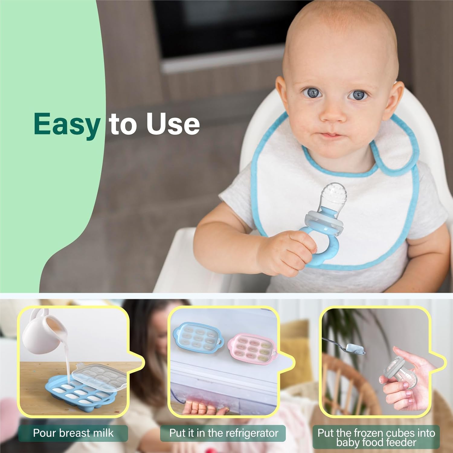 Effortless Meal Prep: Make mealtime easier with our silicone freezer tray. It features eighteen portioned spots that fit perfectly into the feeder pouch. The sturdy lid prevents spills and freezer burn, making it simple to batch prep breastmilk, water, or purees
