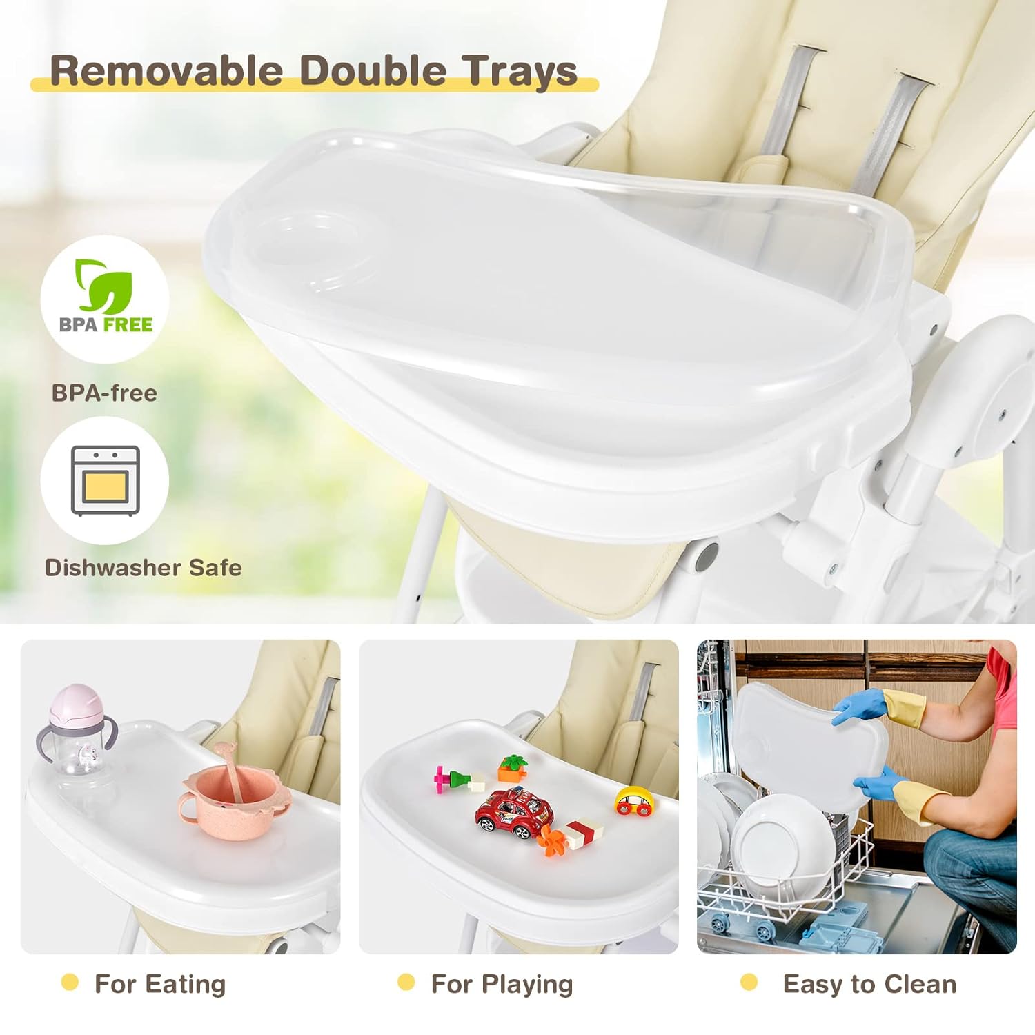 Removable Double Trays & Easy Cleanup: Made of premium PP material, the upper tray is suitable for babies feeding or eating. The groove design on the tray is convenient to hold the baby’s bottle. After removing the upper tray, there is another tray for babies to enjoy playing or reading time. Both the 2 trays are easy to clean with damp cloth.