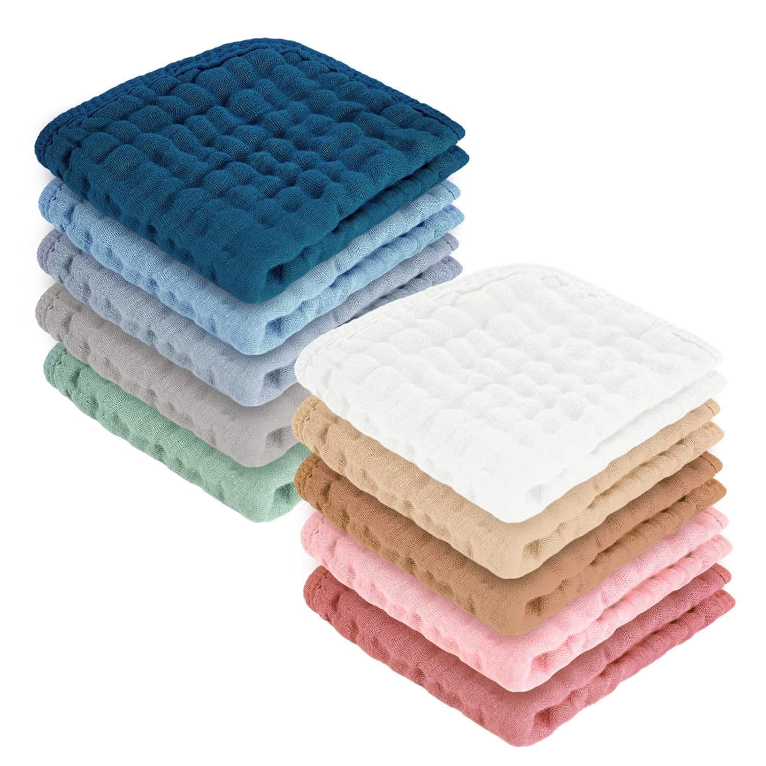 100% cotton .Our baby washcloths are designed for the delicate and sensitive skin of newborn.The wash cloths for babies fabric is very soft, suitable for the delicate skin of newborn babies.This baby washcloths can quickly absorbs moisture and ensure that the newborn baby’s skin is always dry and comfortable.The muslin washcloths baby washcloths is easy to wash and the thickness is just right. After use, wring them out and hang them up.This baby washcloths is perfect for both baby boys and baby girls. The size is 12×12 inches.It can be reused and can be used for baby bath towels, baby wet wipes, baby face towels, burp towels, baby bibs, hand towels, adult face towels, feeding towels. The Baby Washcloths for Newborn is a perfect necessity for baby’s daily care.The 6-pieces baby wash cloth can easily meet the needs of your whole family.
