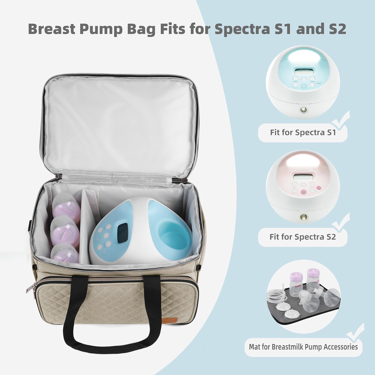 【Custom Fits for Spectra S1/S2】Designed specifically for Spectra S1/S2 breast pumps, this breast pump bag makes a perfect fit. The dual-layer structure includes a lower compartment with a Velcro divider to securely hold your S1 pump bag, 3 baby bottles, the upper compartment for pump accessories well organized