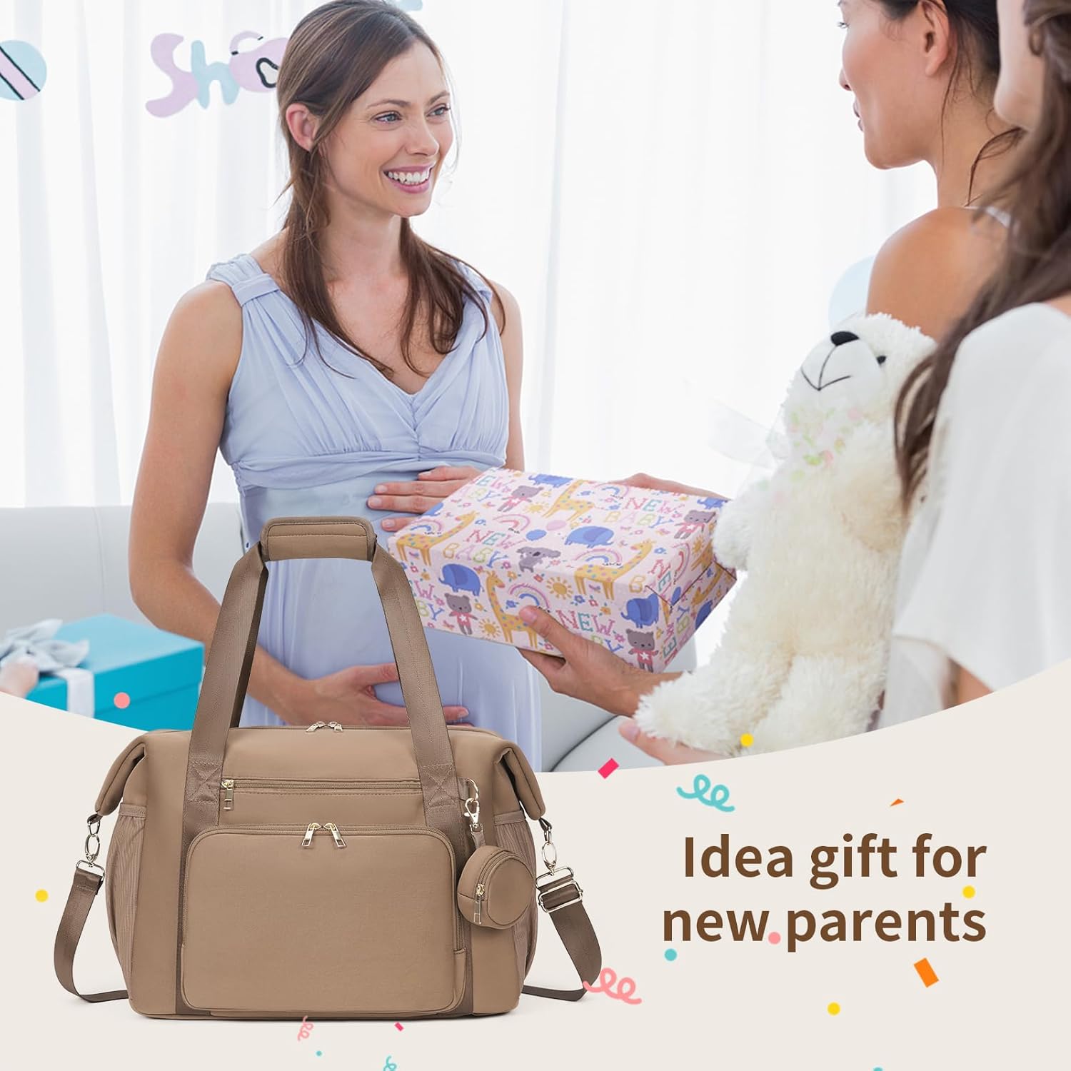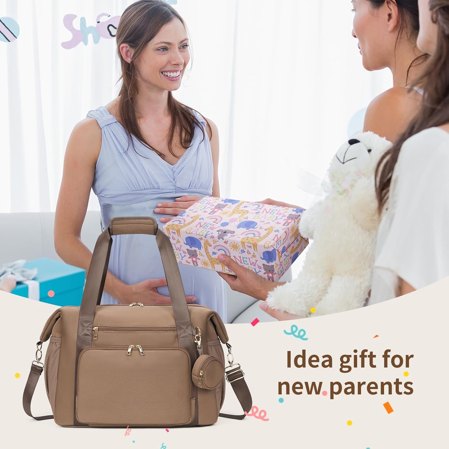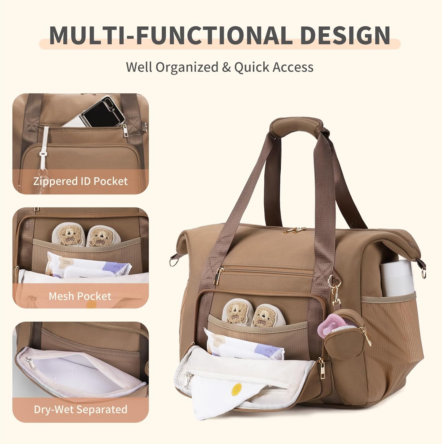 The video showcases the product in use.The video guides you through product setup.The video compares multiple products.The video shows the product being unpacked. diaper bag tote Merchant Video