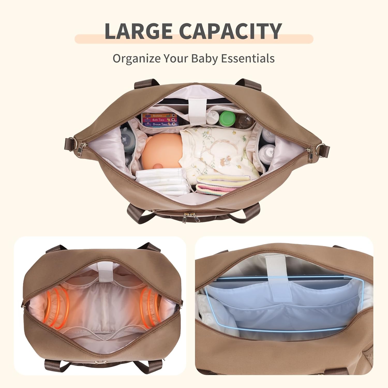 The video showcases the product in use.The video guides you through product setup.The video compares multiple products.The video shows the product being unpacked. diaper bag tote Merchant Video