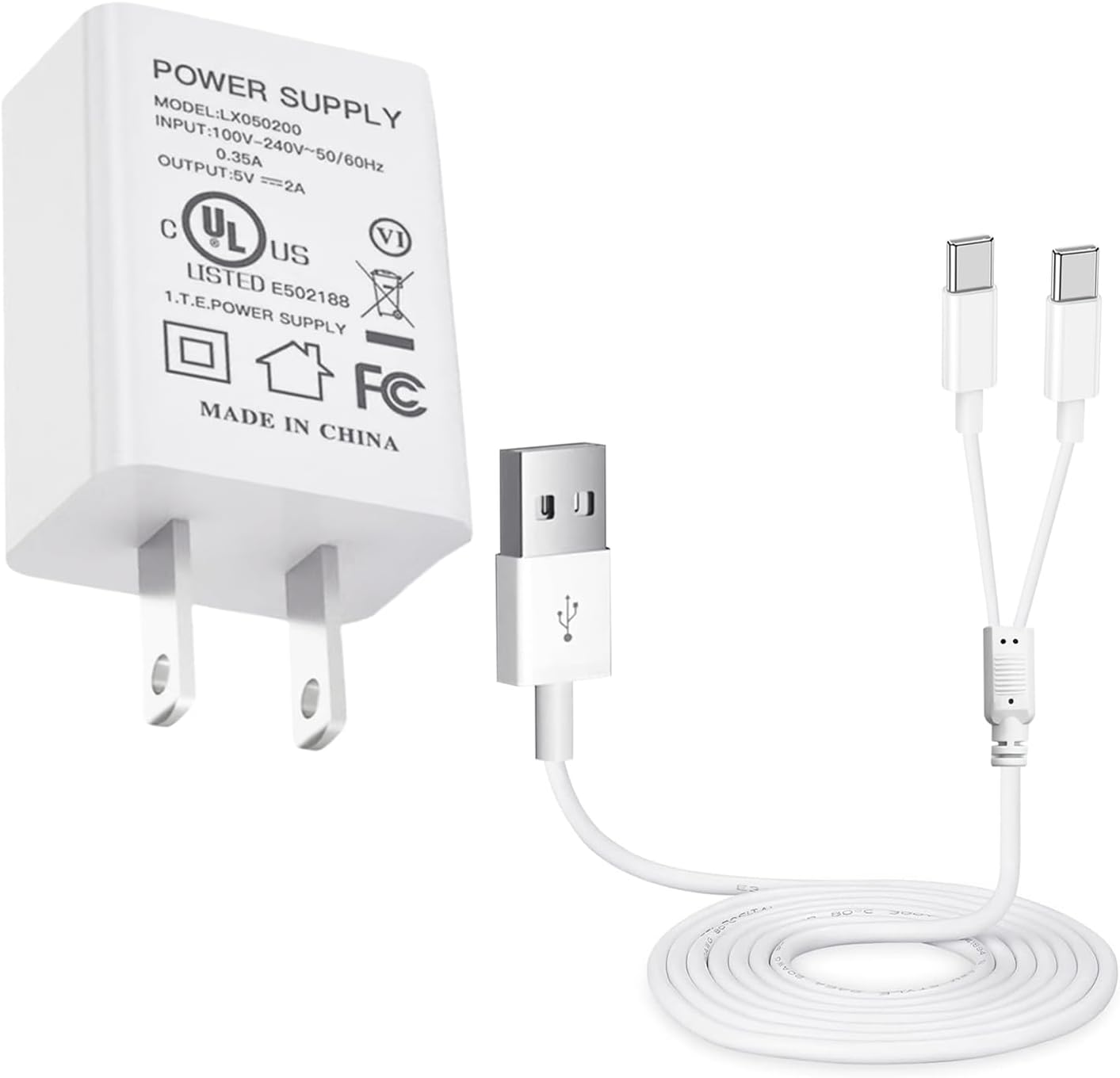 【Product Information】Input Voltage AC100-240V; Output voltage: DC5V ;Output line length: 6.5FT; Fireproof PC Shell (more secure)+ Pure Copper Core (Longer Service Life)