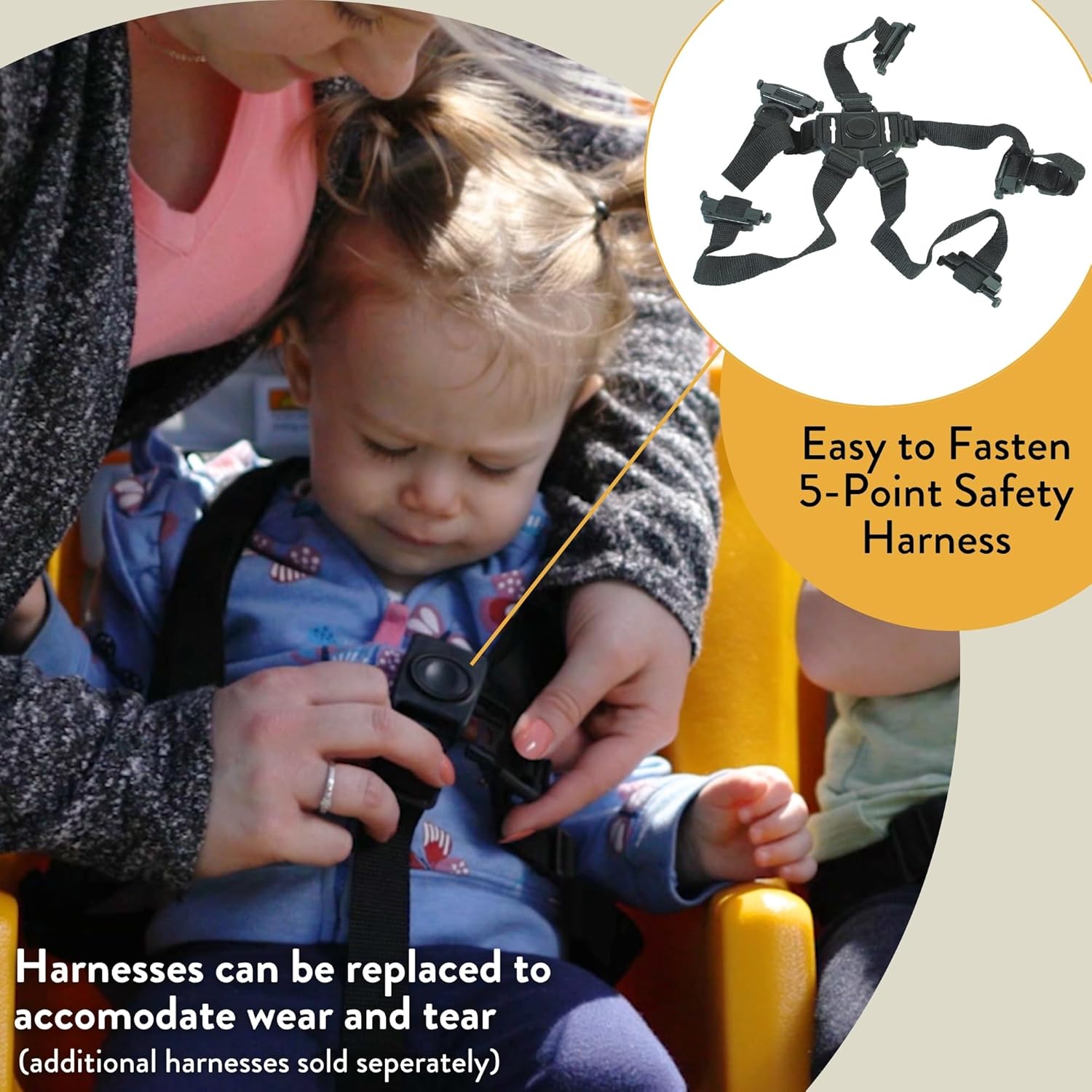 Each seat features replaceable, 5-point harnesses that are easy to fasten and keep kids securely buckled in during rides.