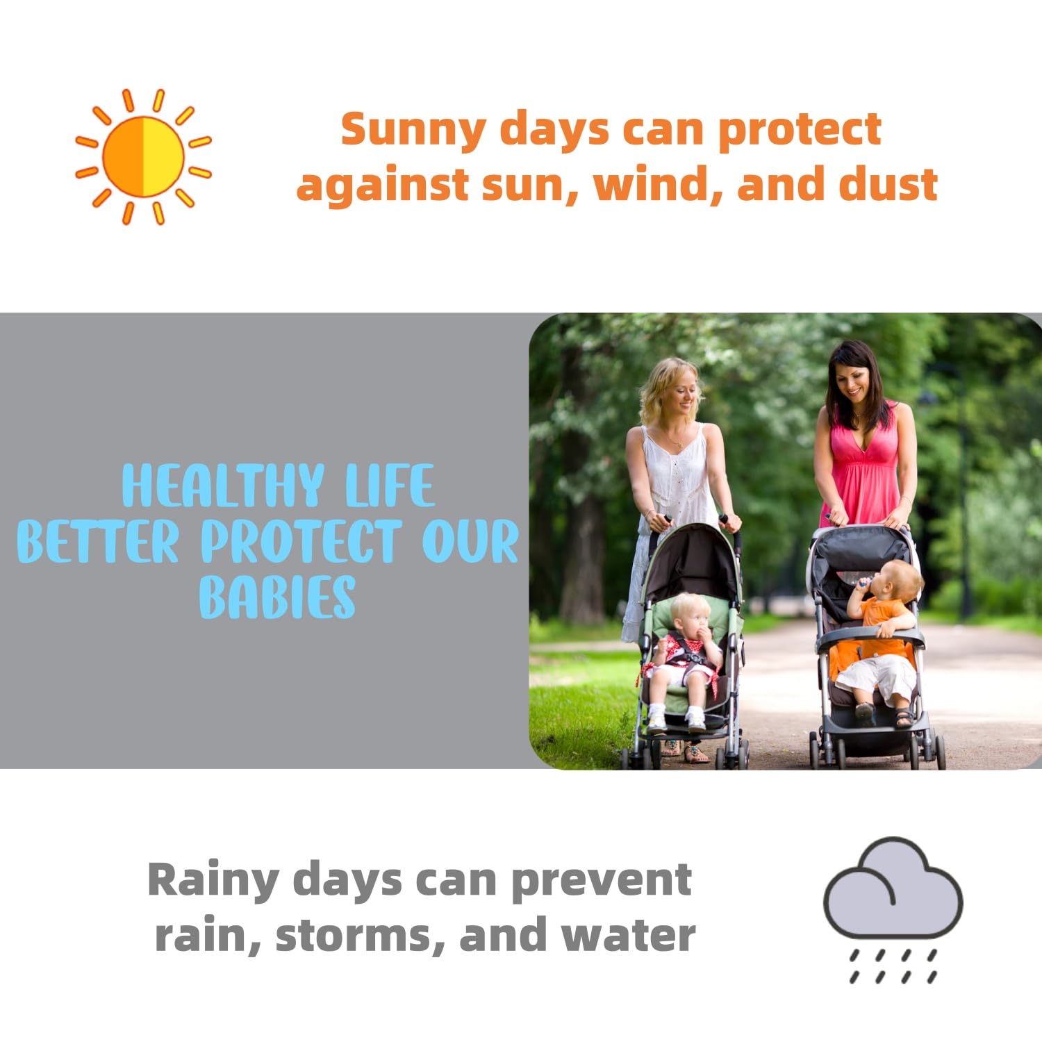 ✨✨【Quick Attachment & Removal】The large weather shield for double stroller raincoat both go on easily and remove just as quickly for parent-friendly use. Clear design allow parents to see children through the stroller rain cover;