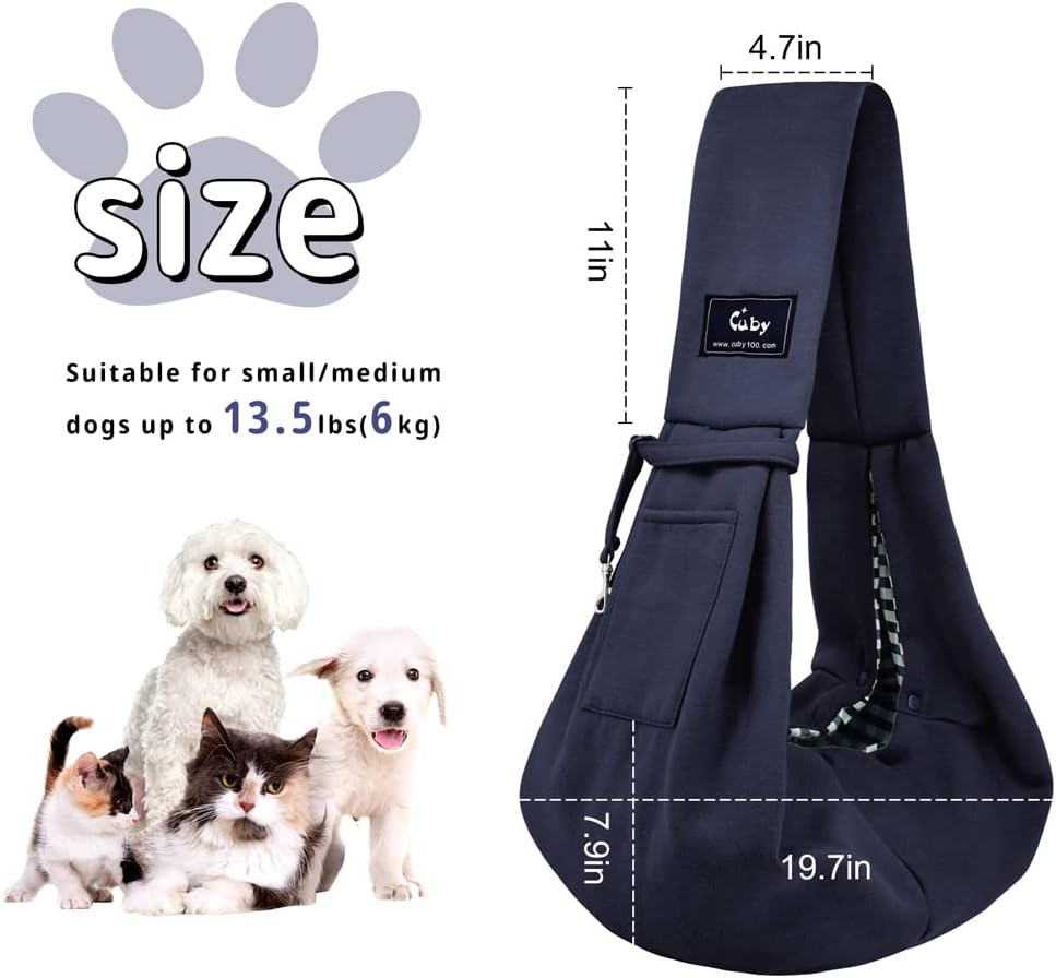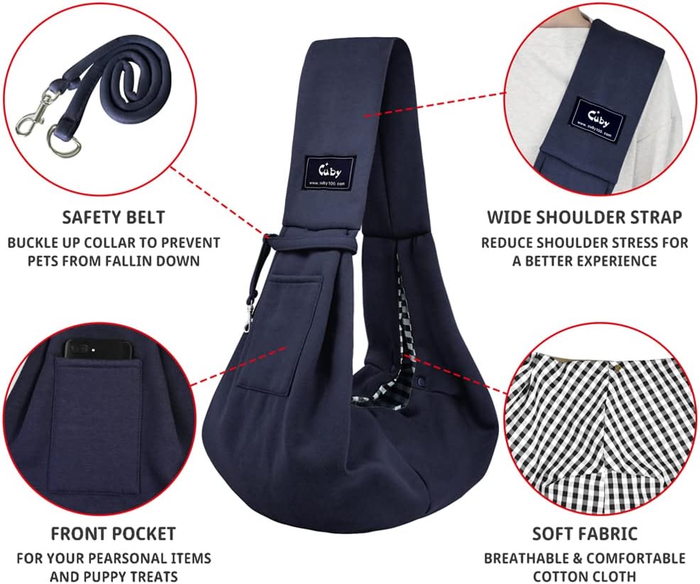 CUBY Dog and Cat Sling Carrier – Hands Free Reversible Pet Papoose Bag – Soft Pouch and Tote Design – Suitable for Puppy, Small Dogs Cats Outdoor (Classic Blue, One Size Classic)