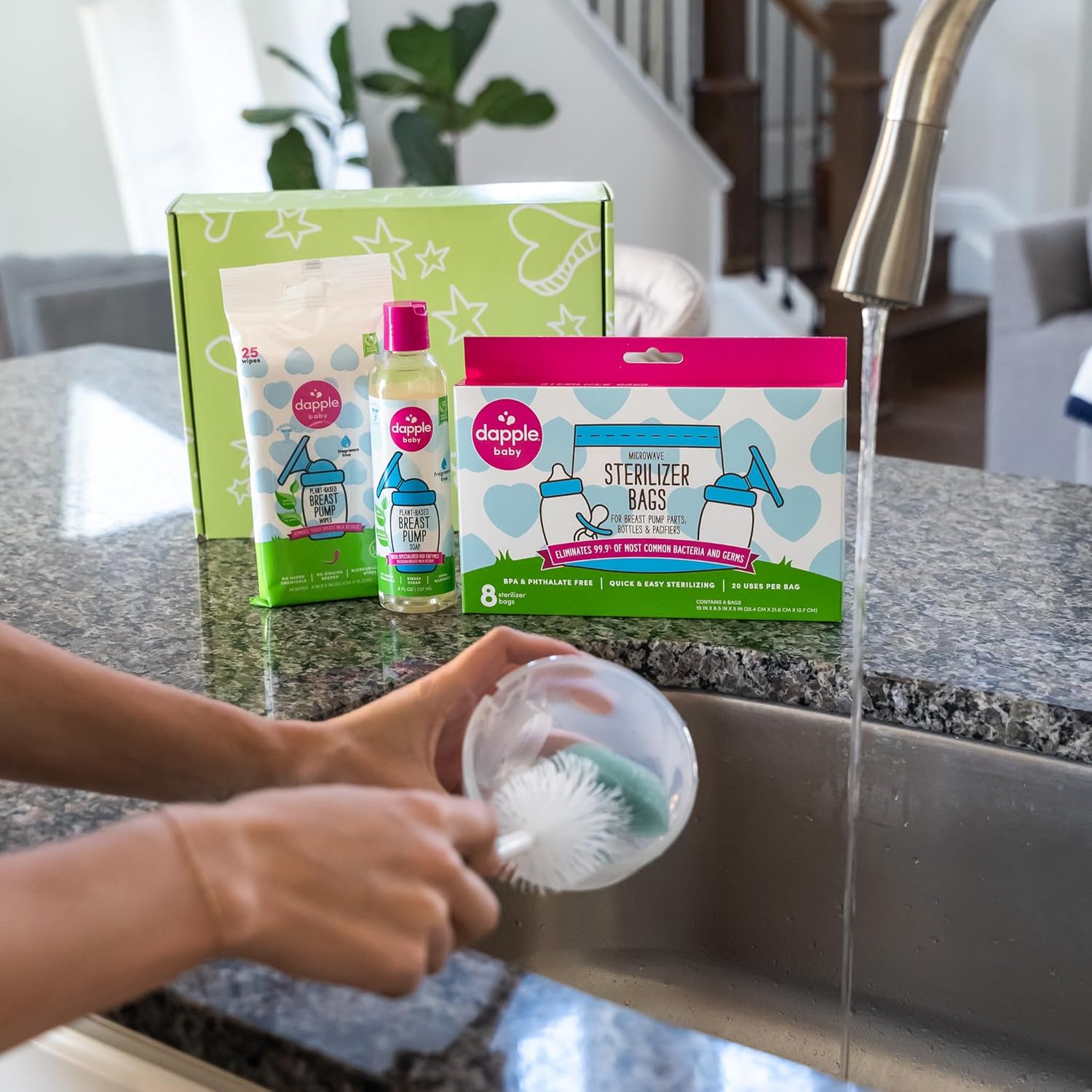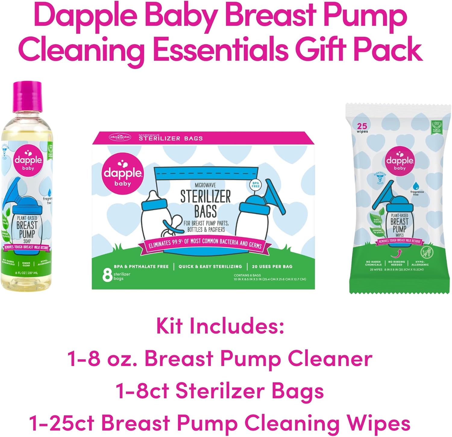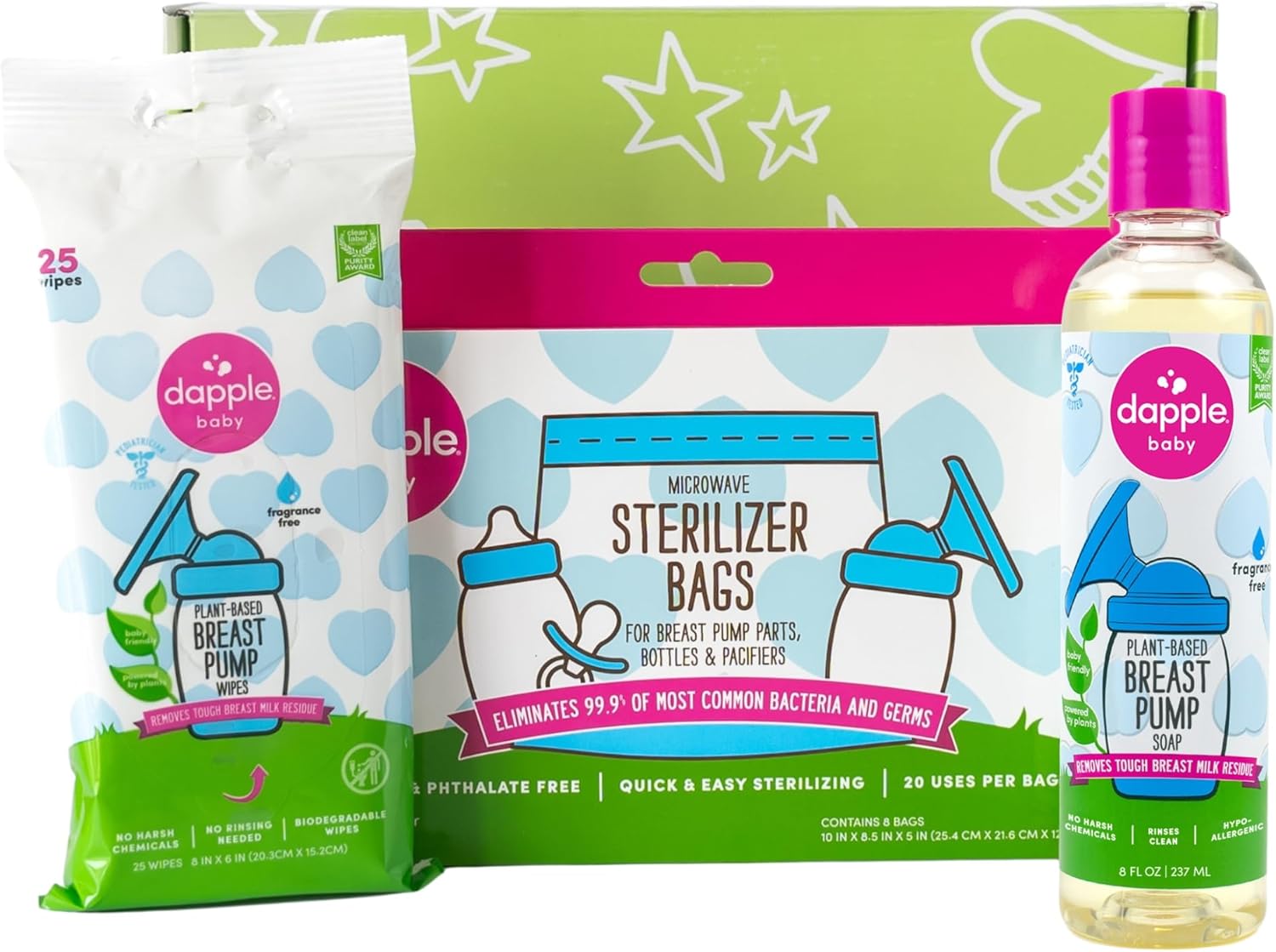 DAPPLE BREAST PUMP SOAP: Specially formulated with a blend of 6 enzymes to safely and effectively break down and wash away protein, fat and carbohydrate residue, which is naturally found in breast milk.