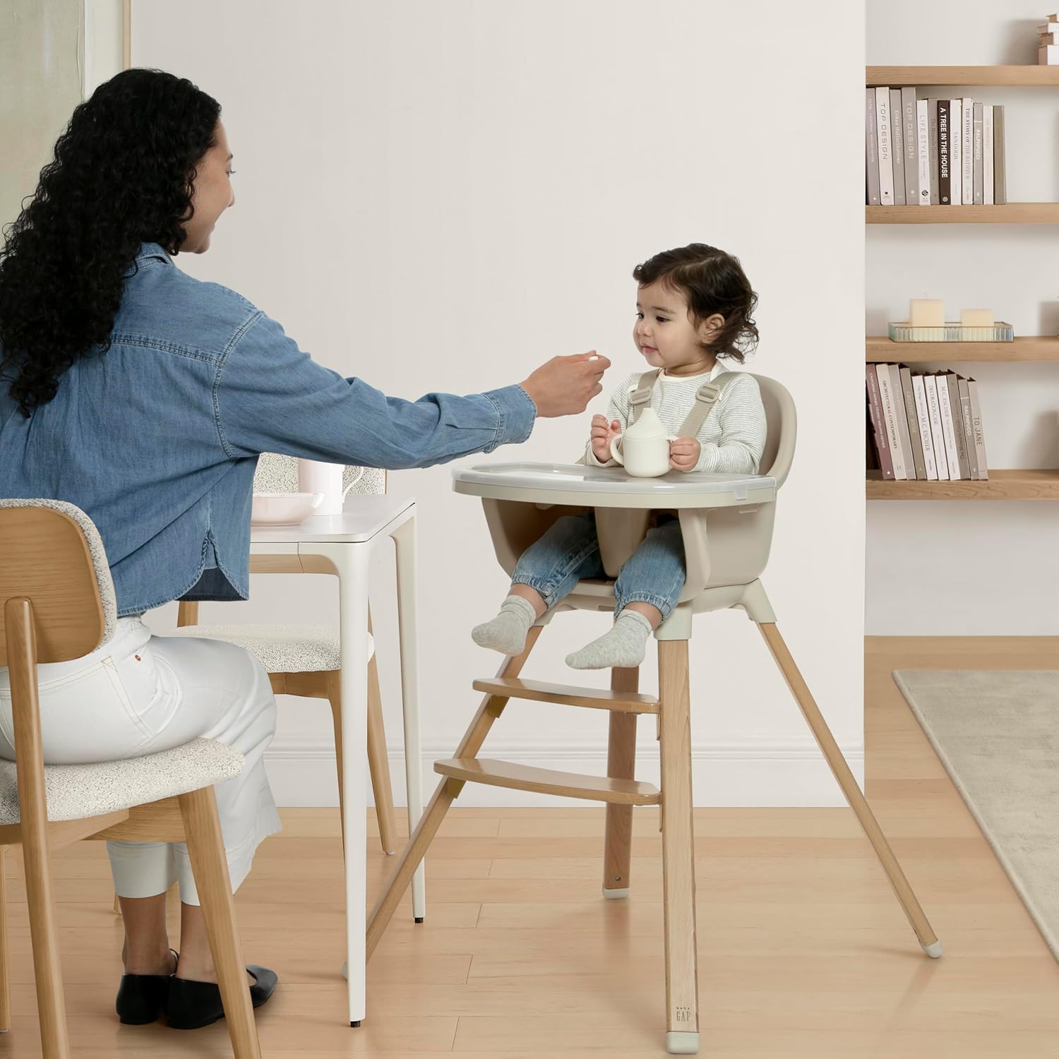 From baby to big kid, the babyGap by Delta Children Otto 3-in-1 High Chair adapts to every age and stage. Its modern design looks great in any space, and can be used three ways: baby high chair, toddler dinning seat without a tray and finally a booster seat. Made from non-toxic materials and FSC-certified beechwood legs, it’s built for safe, stylish, and stress-free dining. Smooth wipe-clean surfaces, and a detachable, dishwasher-safe tray make this convertible high chair a mealtime must-have for years to come.