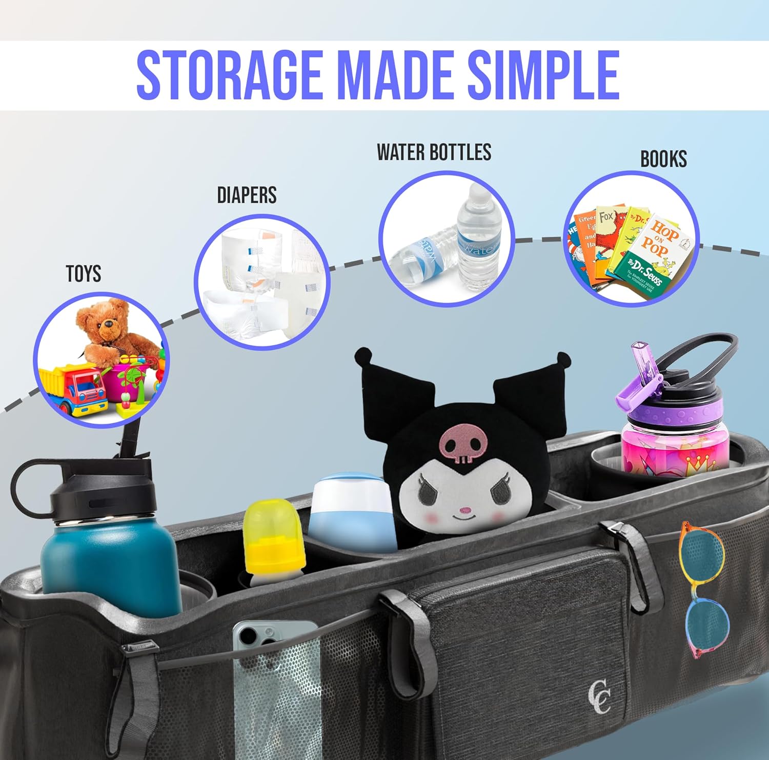 ALL-IN-ONE CONVENIENCE: Designed with five-sided thick padding for stability and durability. Features two front mesh pockets for easy access to keys, phone, and wallet, making it the perfect companion for parents on the go with a double stroller.