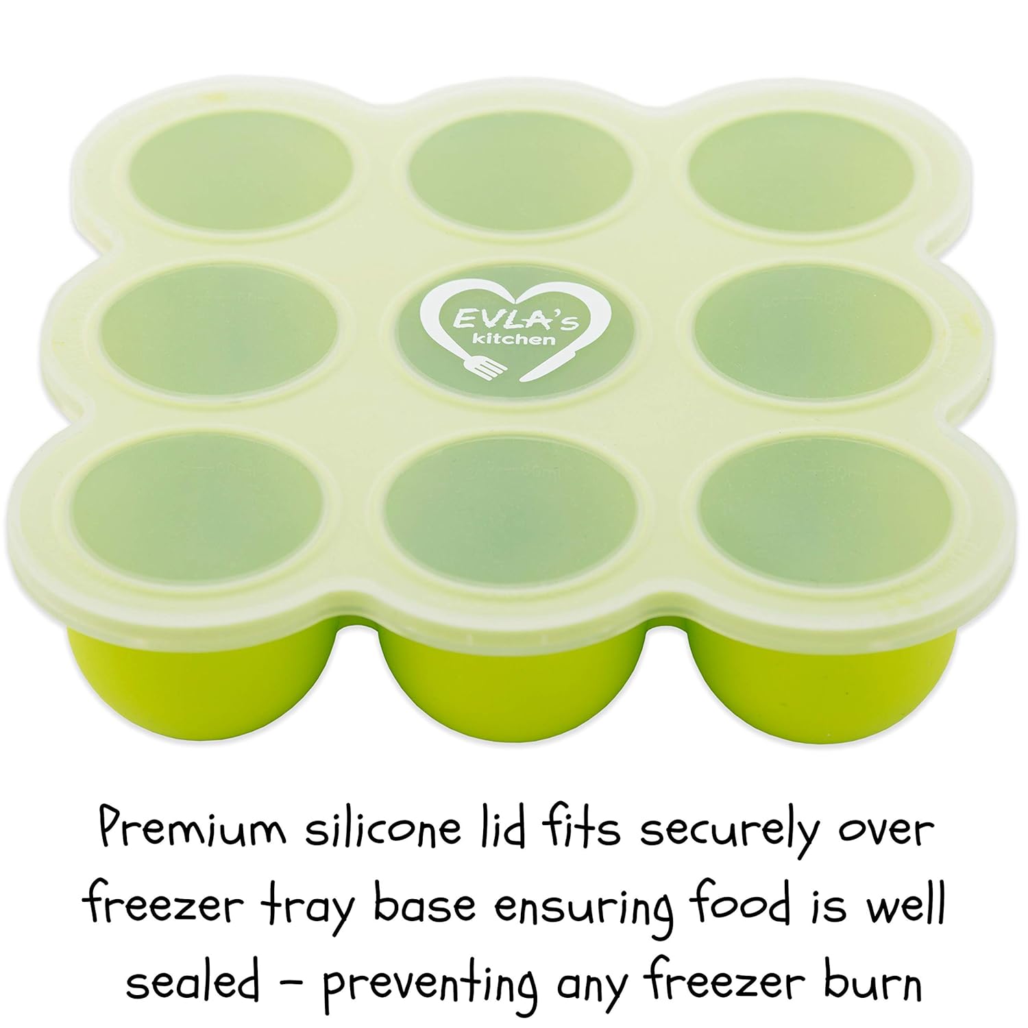 CONVENIENT BABY FOOD FREEZER TRAYS : EVLA’S freezer trays are designed to hold perfectly portioned meals for your baby. They are easy to fill, freeze, and pop out when needed, ensuring that your homemade creations stay fresh and ready to serve. Made from high-quality, food-grade silicone, they are safe for your baby and easy to clean.