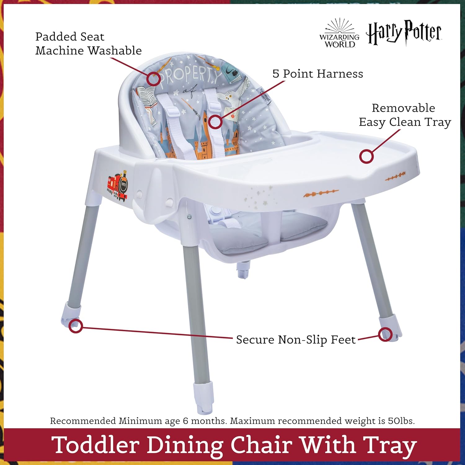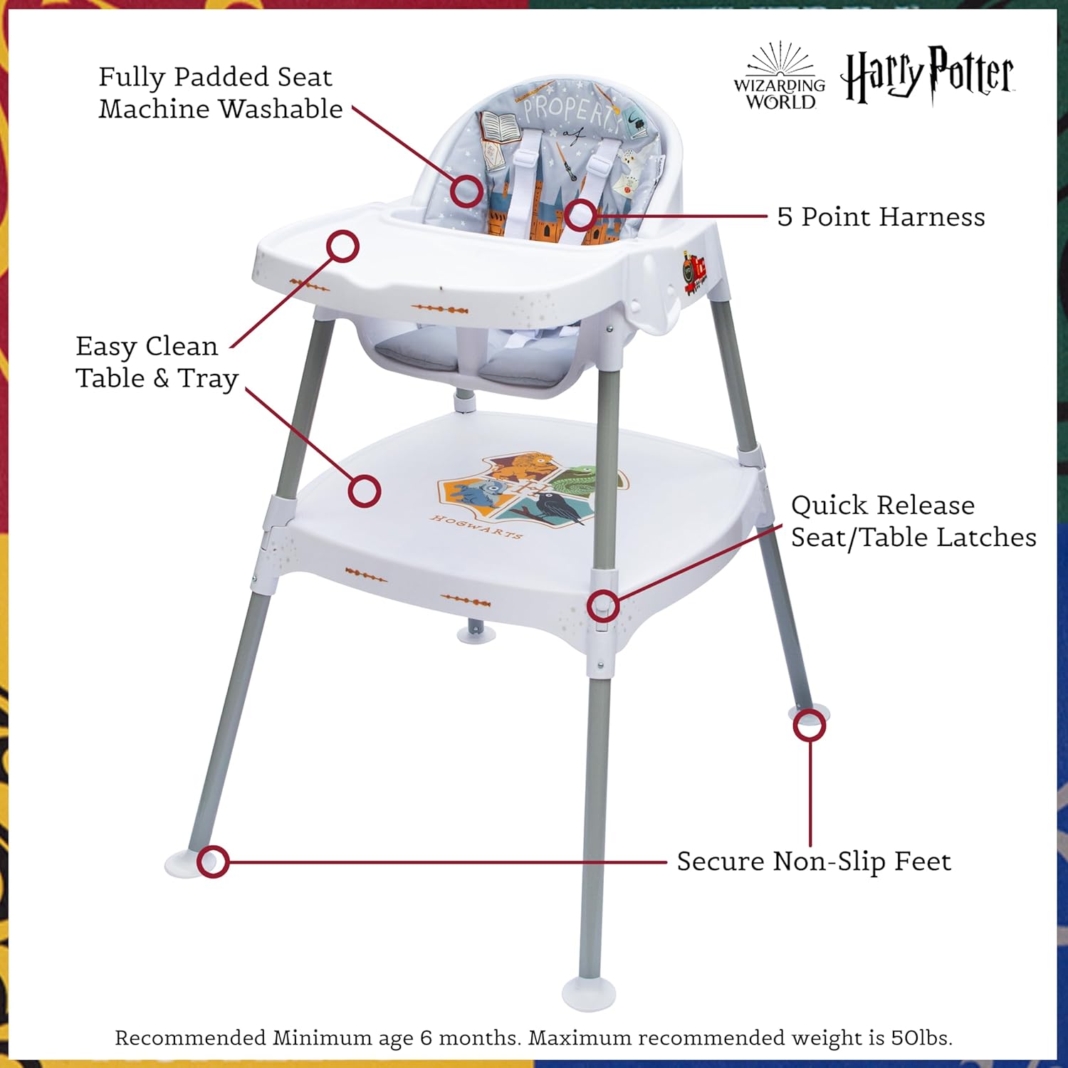 50lbs Capacity = Maximum Enchantment Achieved: Young wizards will use until they reach 50lbs. Official Harry Potter Highchair