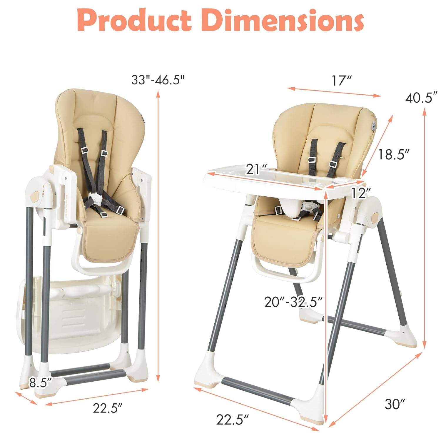 【Folding Design for Various Uses】With a one-click quick folding design, our baby high chair can be easily folded and unfolded in a short time for easy carry and convenient storage. Meanwhile, The lightweight design allows you to take the baby stroller when you go out to use it outside. Removable trays help prevent spills and are easy to clean with a damp cloth.