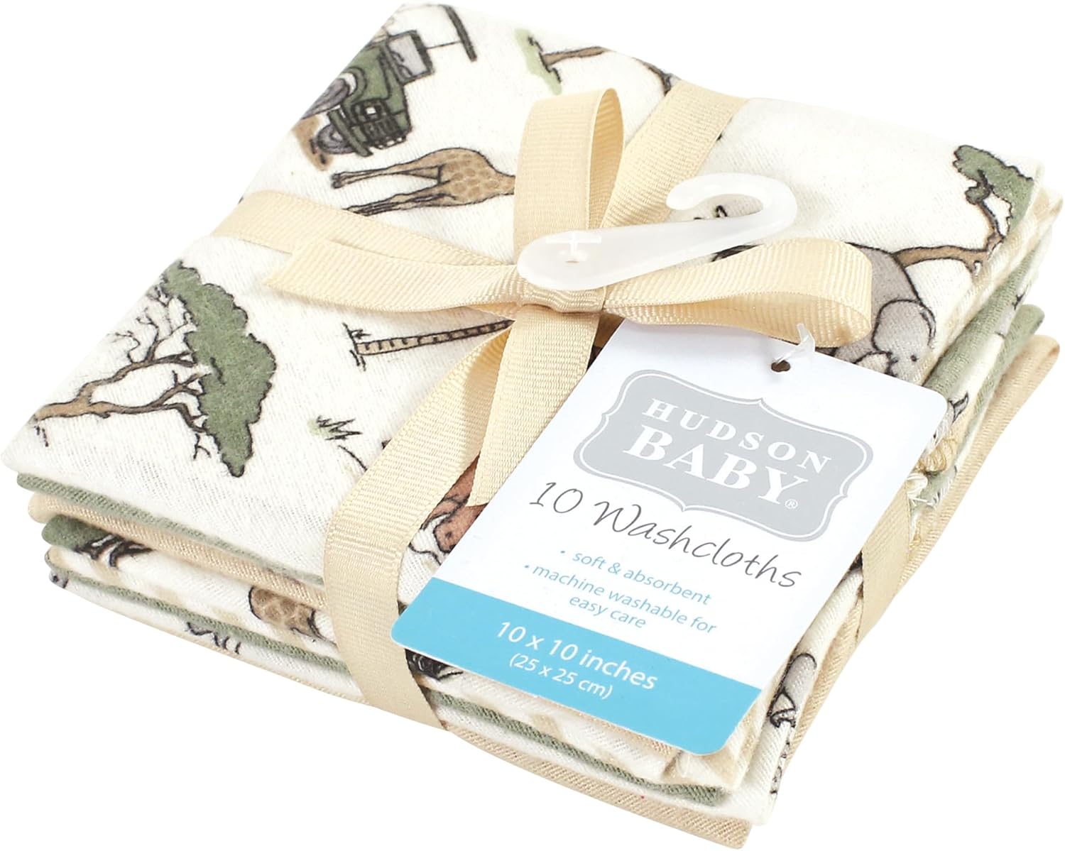 Hudson Baby flannel washcloths offer a great value pack of baby washcloths. Our washcloths are made with 100% flannel cotton and great for feeding and burping. Our multi-purpose cloths are also convenient for life’s unexpected messes and spills. Our value pack is perfect for parents looking for a bundle of washcloths at an affordable value.
