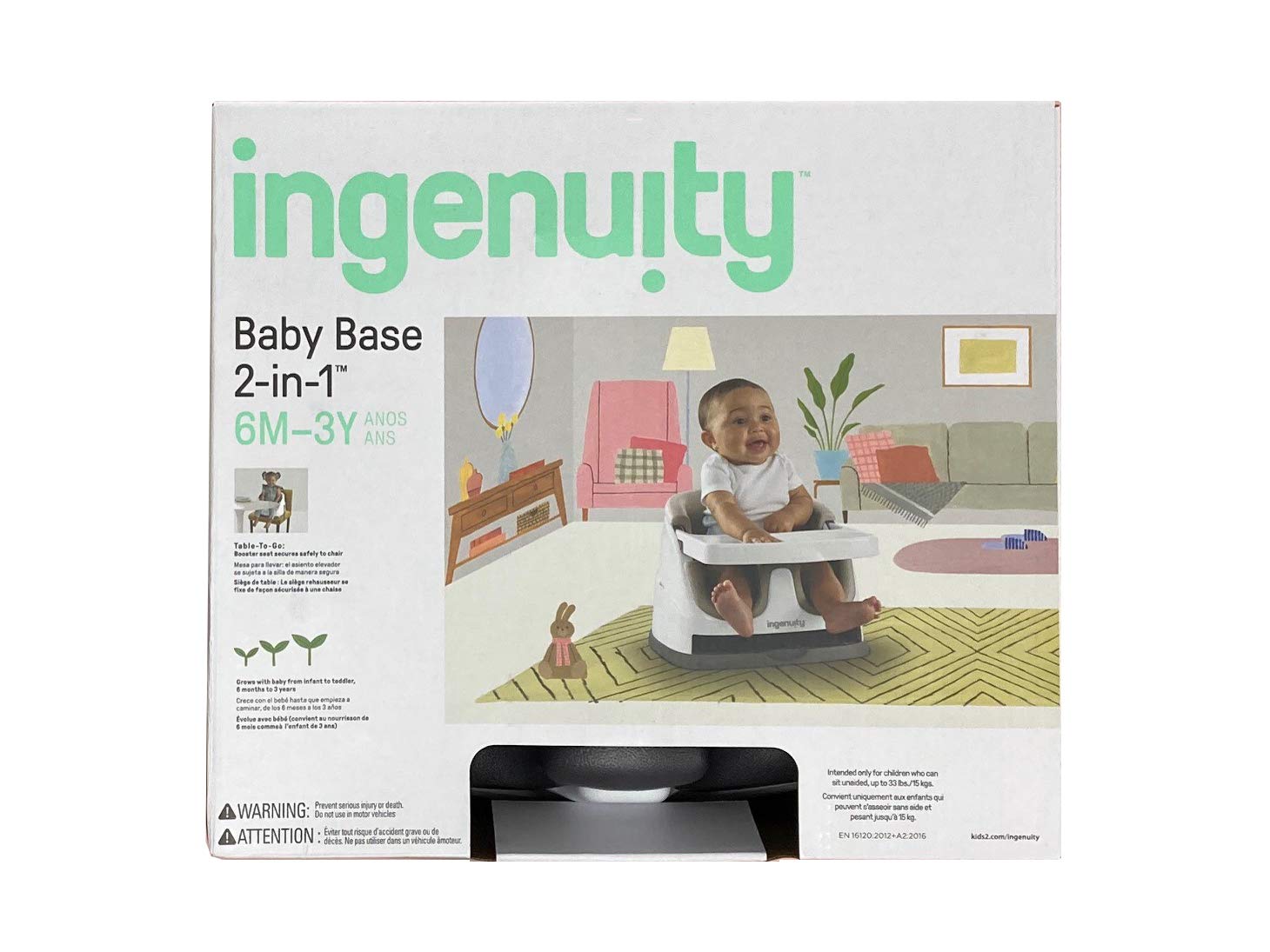 Meals are an important part of family time. Enjoy more laughter and conversation – including baby talk – by giving your little one a seat at the table. The Ingenuity Baby Base 2-in-1 Booster Seat easily attaches to dining chairs so your baby can sit up higher and see more during family dinners. This portable baby feeding seat works just as well sitting with you at the table or as a floor seat during playtime. The removable tray gives your baby her own perfectly sized table, so snacks or toys are easily within reach. When not in use, the tray conveniently tucks away right underneath the booster seat itself. As your baby grows, you can remove the foam seat insert and convert the baby booster into a toddler seat. For all those meals in between, you can count on the wipeable seat and dishwasher-safe tray to leave you more time for family catch-up and less for kitchen clean-up . Care & Cleaning: Spot or wipe clean